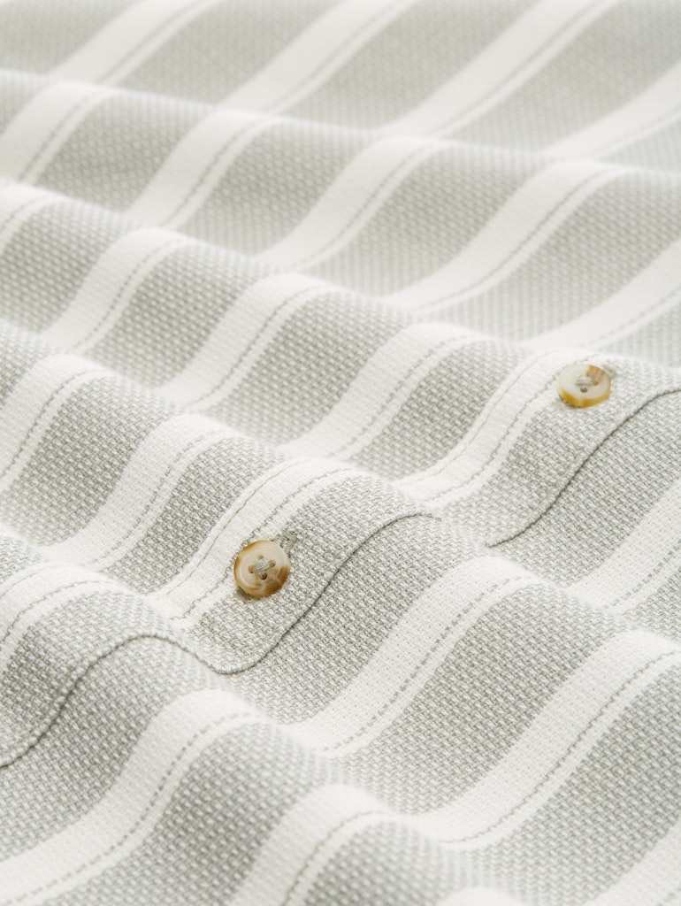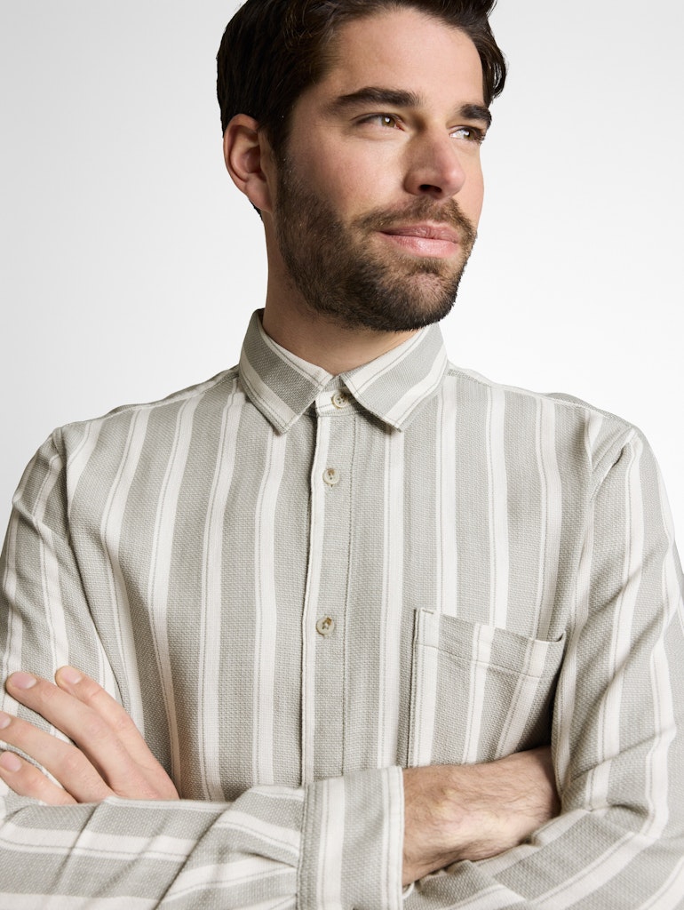 Gestreiftes Dobby Hemd mit Kentkragen und aufgesetzter Brusttasche. Aus einem strukturierten Baumwollstoff.