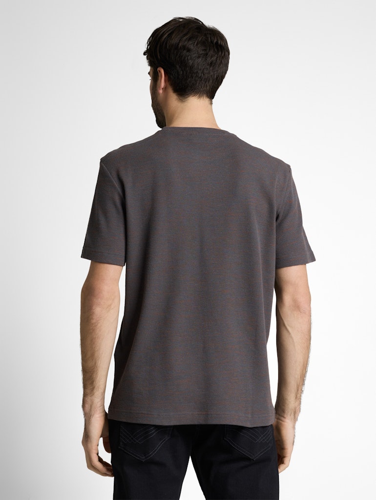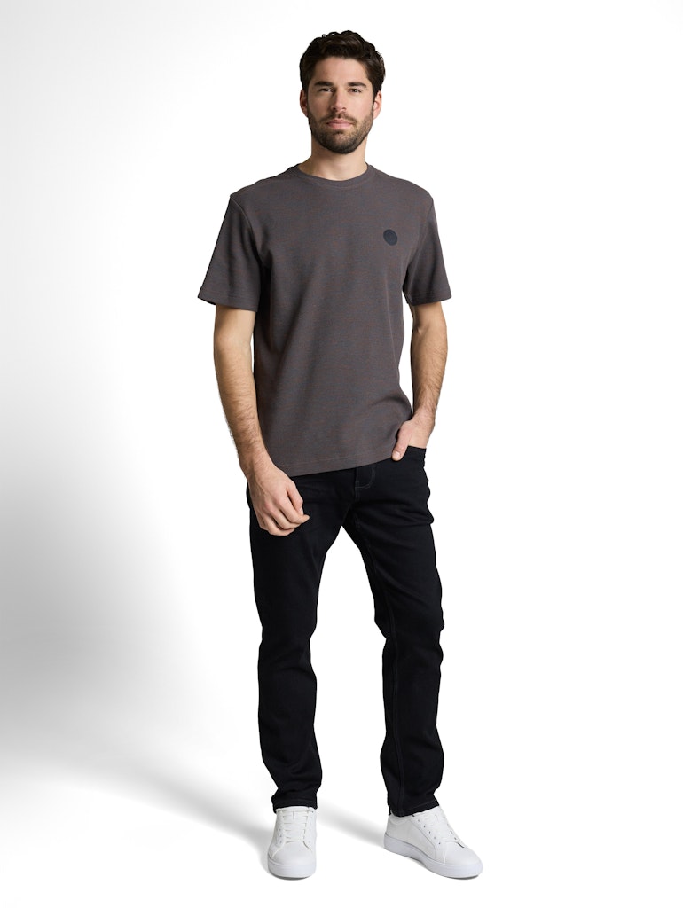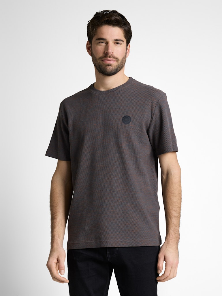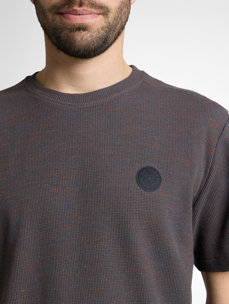 Meliertes T-Shirt mit Logo-Badge auf der Brust. Aus einem strukturierten Material in Waffel-Optik mit Stretch-Anteil.