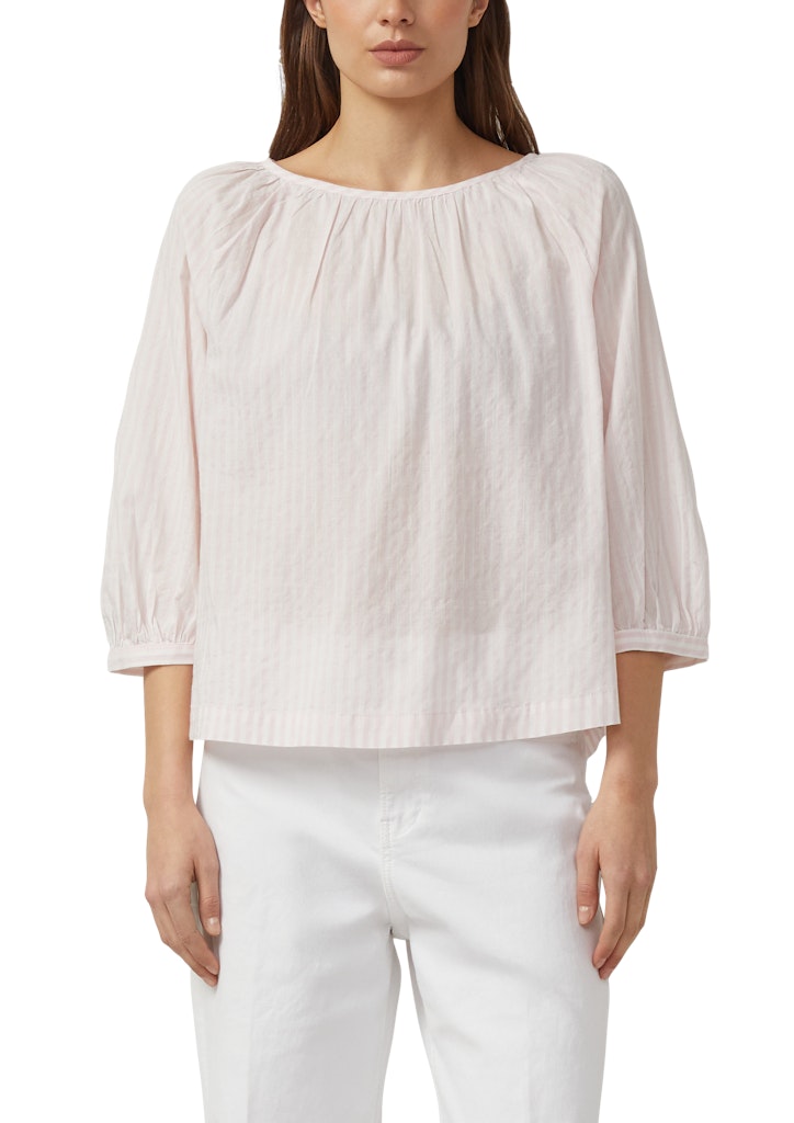 Diese lässige Bluse aus weichem Baumwoll-Viskosemix wird dich mit ihrem femininen Charme begeistern! Der Rundhalsausschnitt, die 3/4-Ärmel und das gestreifte Muster machen sie zum vielseitigen Begleiter. Raffungen und eine verspielte Schleife setzen reizvolle Akzente, während die fließende Relaxed Fit perfekt für entspannte Tage ist.