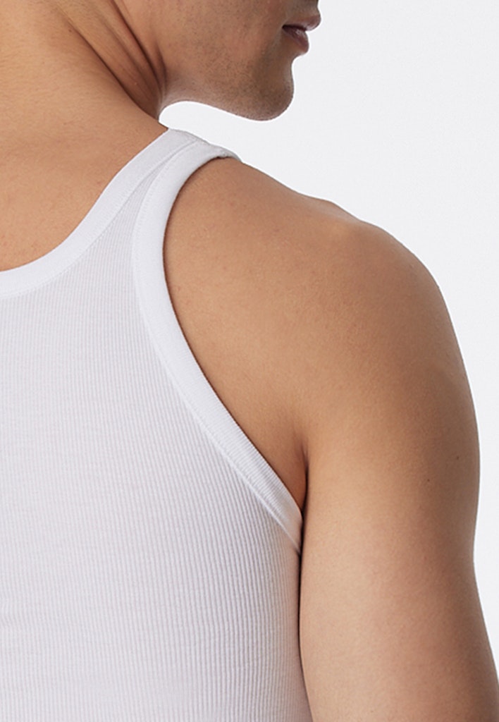 Wäscheklassiker im Doppelpack: Diese weißen Herrenunterhemden versprechen höchsten Tragekomfort in gewohnt bester SCHIESSER-Qualität. 100% supergekämmte Baumwolle fühlt sich dabei angenehm weich an auf der Haut und bleibt in maskulinem Doppelripp auch nach vielen Wasch- und Trocknergängen in Topform. Ideal für Herren, die strapazierfähige, formstabile und langlebige Unterwäsche im klassischen Look schätzen.