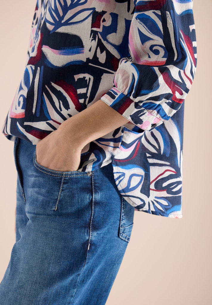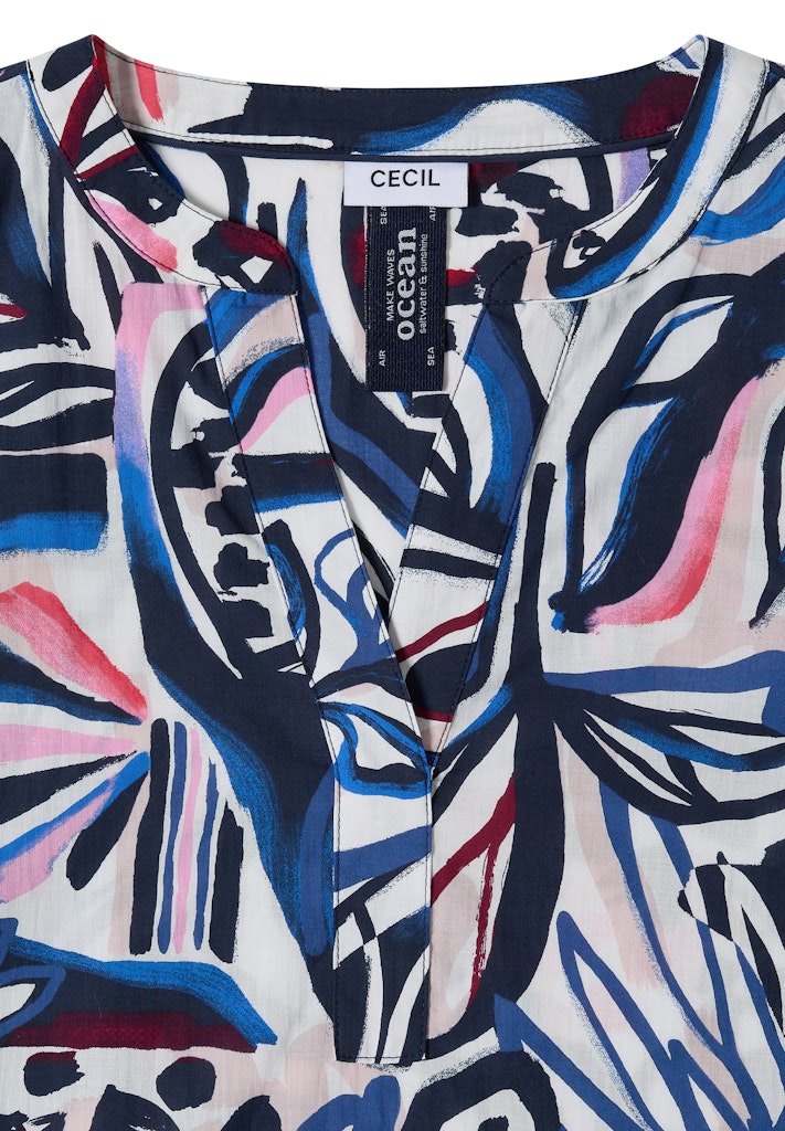 Diese Baumwolltunika von CECIL für Damen bringt mit ihrem maritimen Muster sommerliches Flair in dein Outfit. Der Split Neck und die 3/4-Ärmel unterstreichen den entspannten Stil, während die reine Baumwolle weich und luftig auf der Haut liegt. Der gerundete Saum sorgt für eine schmeichelnde Silhouette. Ideal für dich, wenn du eine leicht kombinierbare Bluse für warme Tage suchst. Baumwolltunika Casual Split Neck 3/4-Arm Leicht und luftig Material: 100% Baumwolle
