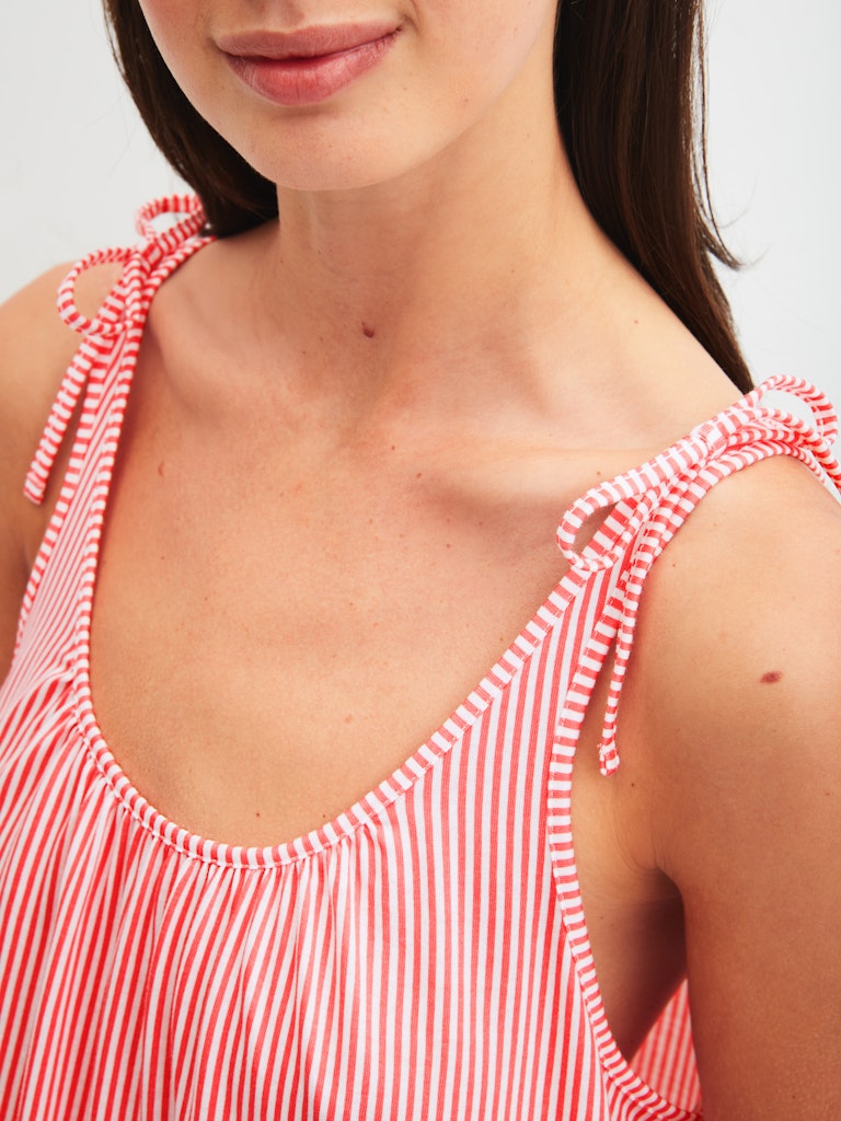 softly draping and pleasant on the skin|loose and flowing for relaxed freedom of movement|adjustable straps with decorative bows|round neckline with fine edge finishing|length 125 cm for a gentle fit