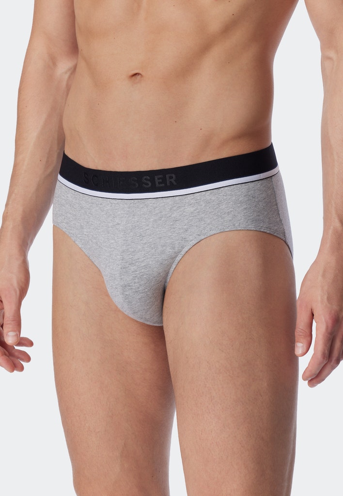 Sportlich schick im Dreierpack! Diese modischen Herren-Slips in Schwarz und Grau aus der beliebten "95/5" Serie stehen für erstklassigen Tragekomfort. Mit ihrem schwarzen Logo-Webgummibund sitzen die Unterhosen jederzeit perfekt am Körper. Das elastische Single Jersey-Material aus 95% natürlichem Organic Cotton und 5% Elastan fühlt sich besonders angenehm auf der Haut an. Eine rundum bequeme Tagwäsche für alle, die auf bewährt beste SCHIESSER-Qualität setzen!