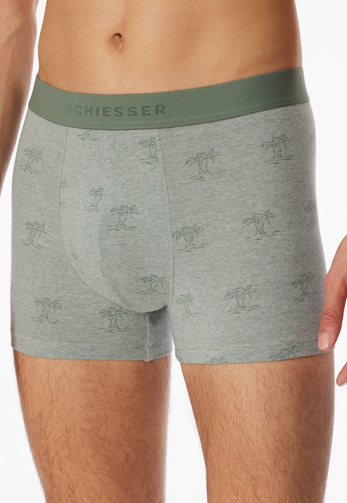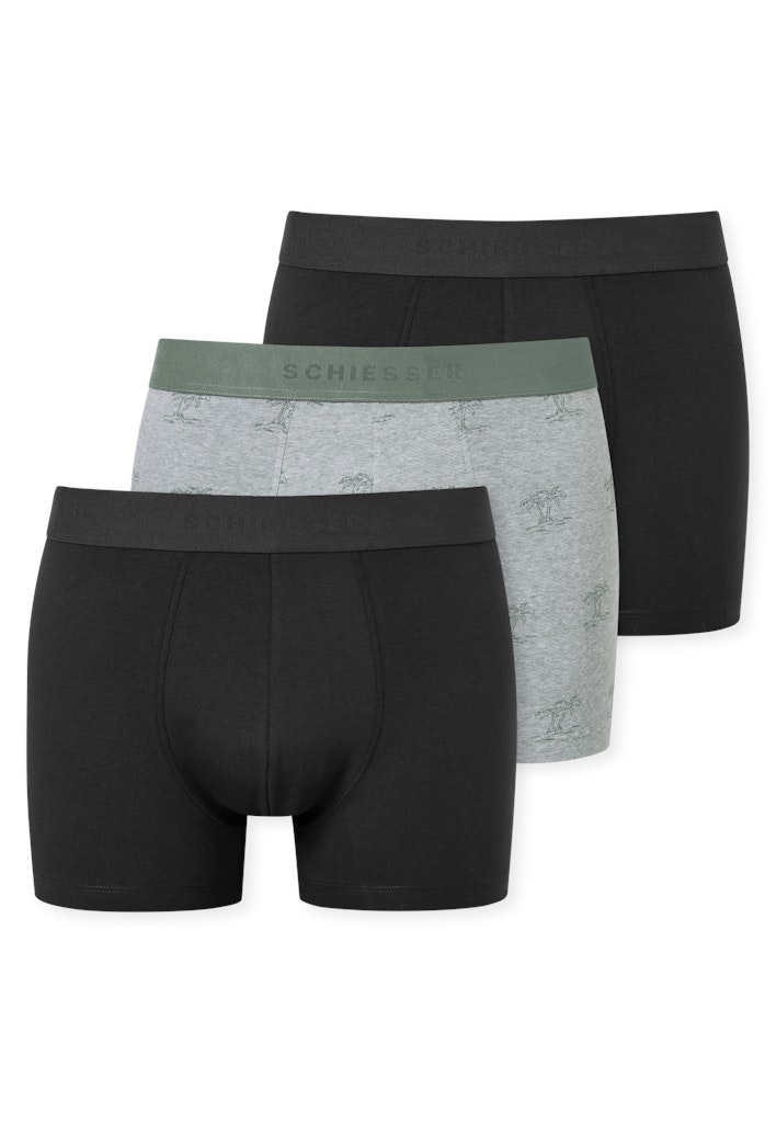 Herren-Shorts im 3er-Pack (2x dunkelblau, 1x graublau-dunkelblau mit Rautenmuster), aus der beliebten SCHIESSER Serie "95/5", angenehm softer Logo-Webgummibund, angenehm weich und formstabil dank 95 % natürlichem Organic Cotton und 5 % Elastan, unsere Models sind 186 cm bzw. 187 cm groß und tragen Größe 50/M, in perfekt sitzender, elastischer Single-Jersey-Qualität