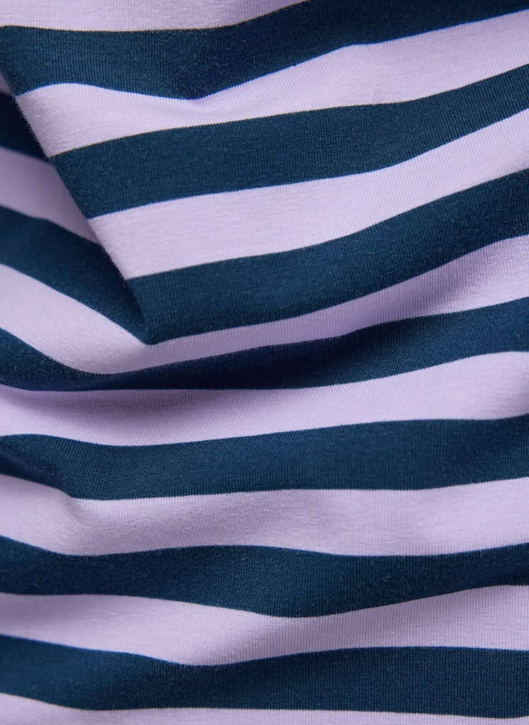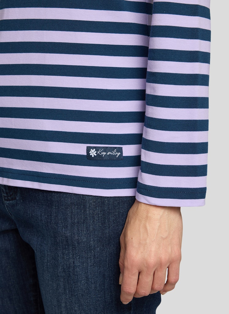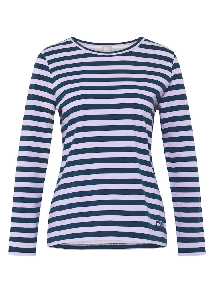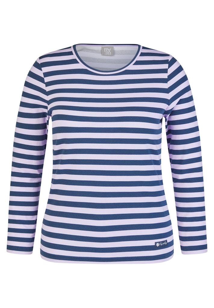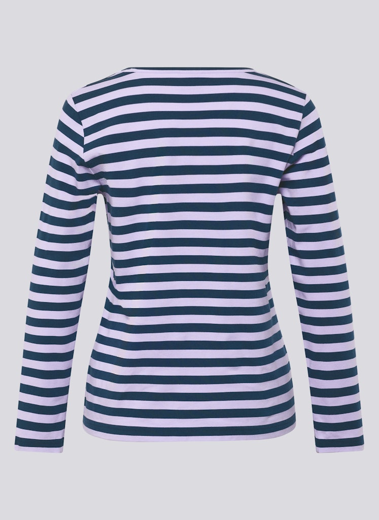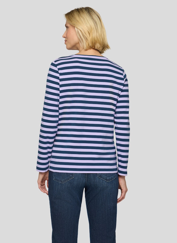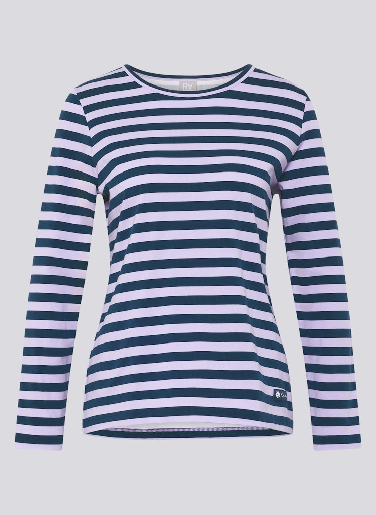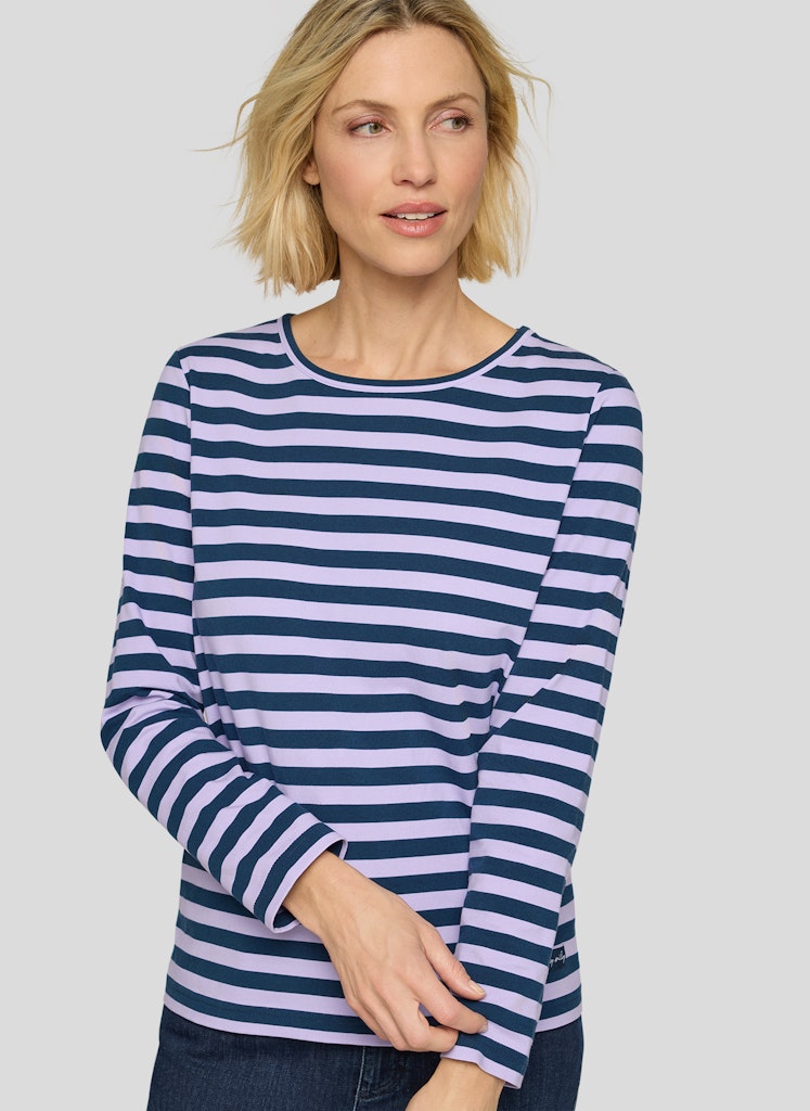 Das klassische Ringelshirt mit langen Ärmeln und rundem Ausschnitt bietet dank elastischer Qualität hohen Tragekomfort. Die Kombination aus gedecktem Rosé und Dunkelblau verleiht dem sportiven Basic eine frische Note, während das Marken-Patch am Saum einen dezenten Akzent setzt. Bequeme Stretchqualität. Bequeme Stretchqualität. Patch am Saum.