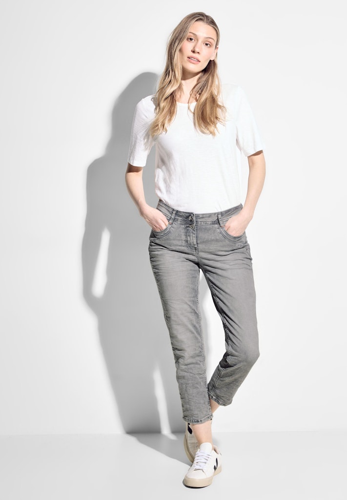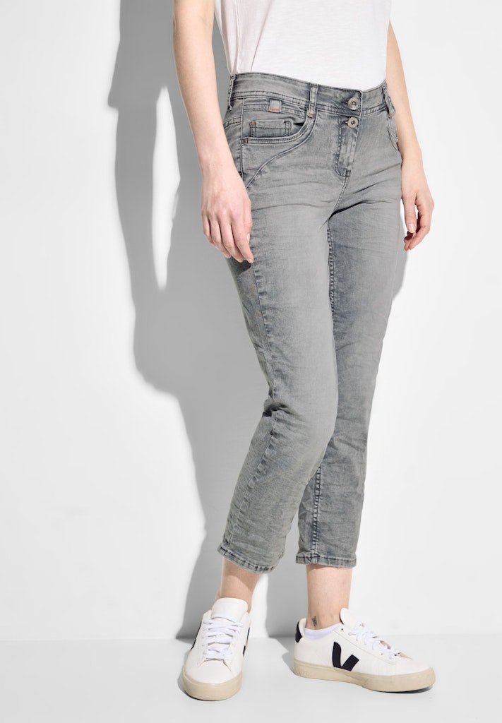 Die Casual Fit Hose von CECIL im Style Scarlett ist ein absolutes Must-Have für Damen. Mit einem praktischen 2-Knopf- und Reißverschluss, einem schmeichelnden Slim Leg Schnitt und einem funktionalen 5-Pocket Design vereint sie Stil und Komfort in Perfektion. Der Mid Waist Bund und die attraktive graue Waschung verleihen dieser Hose ihren einzigartigen Charme und machen sie zu einem vielseitigen Allrounder, der sich ideal für jeden Tag eignet.