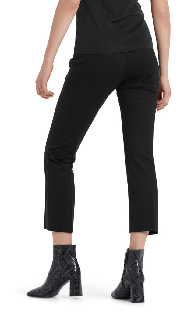 7/8 Hose aus feinem Jersey|Schmale 7/8 Hose mit Bügelfalte und Gummibund. Die Hose verläuft nach unten hin gerade und wir vorne mit einem Reißverschluss und einem Knopf geschlossen.|Farbe: black|Dehnbare Viskosemischung|Femininer Schnitt|Das Model ist 179 cm groß und trägt N3/38.|Bügelfalte