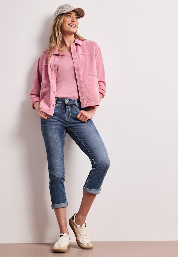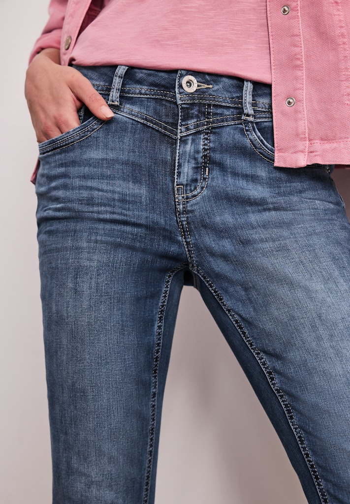 Die 7/8 Slim Leg Jeans von Street One für Damen ist ein vielseitiger Klassiker für deinen Alltag. Slim Legs betonen die Figur, während der Casual Fit für angenehme Bewegungsfreiheit sorgt. Der stretchige Denim aus Baumwollmix macht die Jeans besonders komfortabel. Mit Turn-Up Detail und 5-Pocket-Style gelingt ein moderner Look. Denim Hose Casual Fit Slim Legs Mid Waist Bequem Material: 78% Baumwolle, 21% Polyester, 1% Elasthan