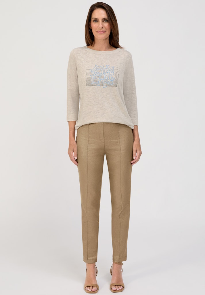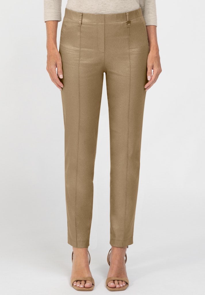 Moderner Chic mit höchstem Tragekomfort: Unsere Stretch-Hose Denver überzeugt mit einer schmalen, verkürzten Passform und einem cleanen Look. Das leicht glänzende Material im hochwertigen Baumwoll-Modal-Mix mit Elasthan bietet optimale Bewegungsfreiheit. Ein elastischer Gummibund mit Gürtelschlaufen sorgt für Bequemlichkeit, während die abgesteppte Biese und kleine Schlitze am Saum das Design modern abrunden. Ein vielseitiges Modell für viele Gelegenheiten.
