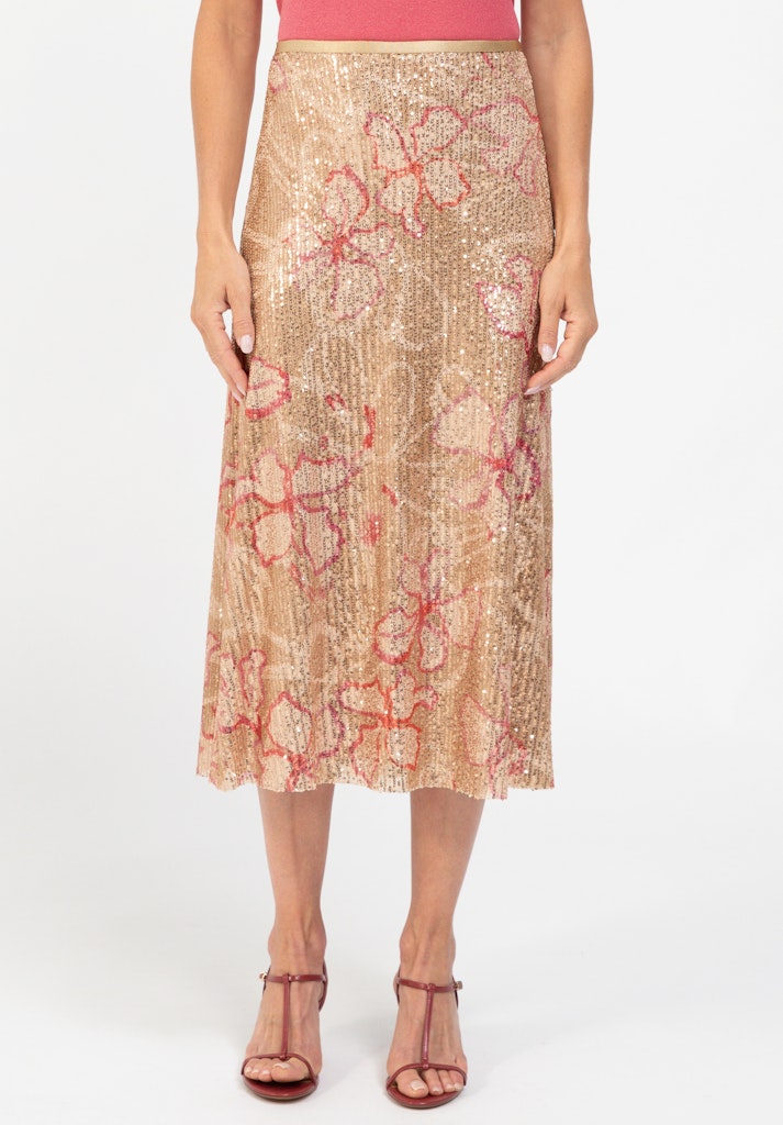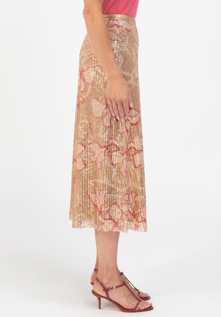 Glanzvoll auftreten mit Feli! Unser neuer schicker Paillettenrock überzeugt mit seiner modernen Maxi-Länge, der leicht ausgestellten Form und dem komfortablen Gummibund. Hochwertiges, elastisches Material und ein weiches Jerseyfutter sorgen für angenehmen Tragekomfort. Ein Rock, der Eleganz und Leichtigkeit vereint, und Sie bei jedem Anlass strahlen lässt.