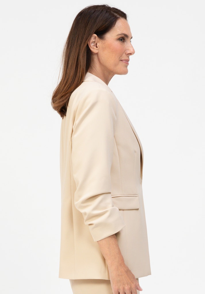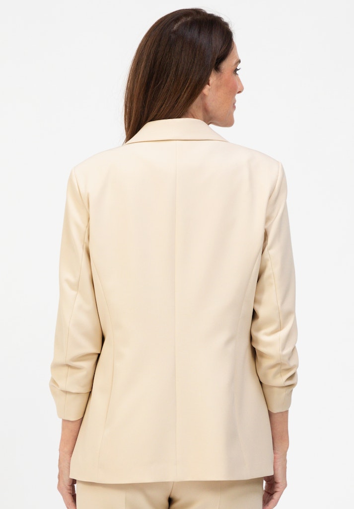 Unser neuer, trendiger Blazer Edith ist ein echtes Must-have für jede Garderobe. Der klassische Reverskragen, stilvolle Pattentaschen, ein feiner Haken- und Ösenverschluss sowie der modische 3/4-Arm mit leichter Raffung verleihen dem Blazer eine elegante, moderne Note. Dank des hochwertigen Materialmixes mit Elasthan und der geraden Passform mit formgebenden Nähten bietet Edith hohen Tragekomfort und eine schöne Silhouette. Ob elegant mit Bluse oder lässig-schick mit Shirt kombiniert - dieser Blazer ist vielseitig einsetzbar.
