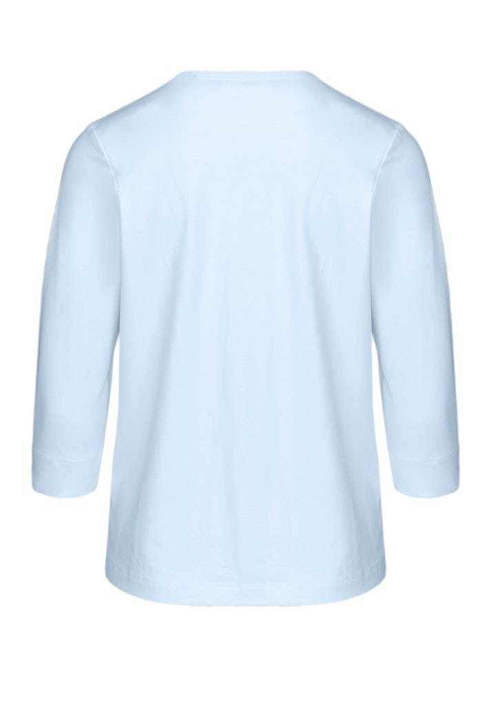 Unser neues Rundhalsshirt Dini überzeugt mit einem trendigen Frontmotiv, das durch eine hochwertige Kordelapplikation und dezente Schmucksteinchen veredelt wird. Der feminine Rundhalsausschnitt mit breit abgesteppter Blende und die 3/4-Ärmel runden das Design ab. Die Baumwollqualität mit Elasthan trägt sich angenehm und sorgt zusammen mit der geraden Passform für hohen Komfort. Ob unter einem Blazer oder kombiniert mit einer Jeansjacke, Dini ergänzt zahlreiche Looks mühelos.