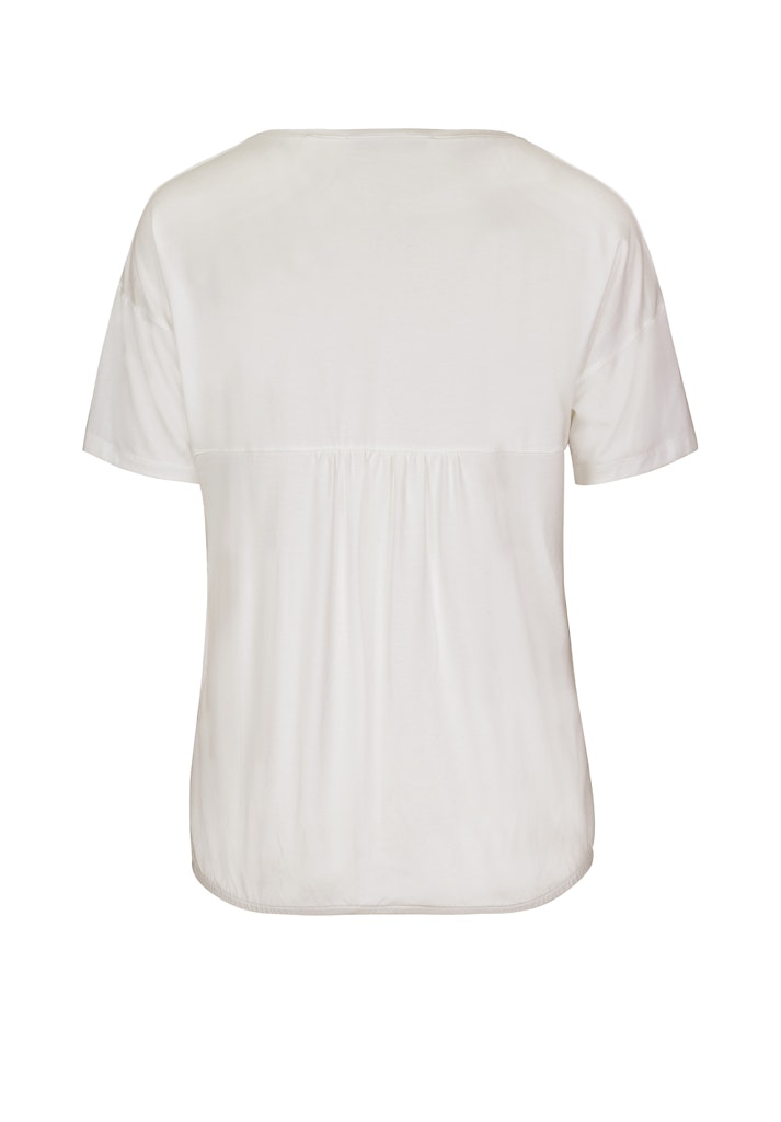 Unser edles Blusenshirt Julie überzeugt mit einer hochwertigen Satinfront und einem dezenten, femininen Flower-Print. Der klassische Rundhalsausschnitt und die überschnittenen Kurzärmel verleihen dem Design eine moderne, elegante Note. Das Rückenteil und die Ärmel aus Jersey sorgen für angenehmen Tragekomfort und einen schönen, fließenden Fall.