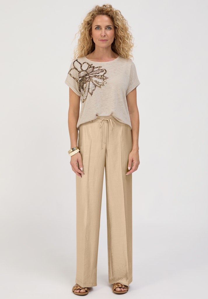 Ein perfekter Begleiter für viele Anlässe ist unser neues Rundhalsshirt Julie. Die hochwertige Paillettenstickerei verleiht dem Shirt eine edle, modische Note, während die feine Strickqualität für eine elegante Optik sorgt. Überschnittene Kurzärmel und ein breites Saumbündchen unterstreichen den modernen Look. Die gerade, lockere Passform bietet hohen Tragekomfort, ergänzt durch einen soften Materialmix mit angenehmem Tragegefühl. Julie lässt sich vielseitig kombinieren und eignet sich ideal für stilvolle Alltags- und Freizeitlooks.