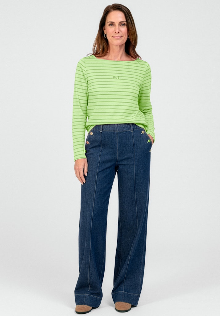 Lässig und vielseitig, unser Langarmshirt Lotta besticht durch den Karree-Ausschnitt und das tonige Ringelmuster in aktueller Trendfarbe. Die gerade, lockere Passform mit seitlichen Saumschlitzen sorgt für einen entspannten Sitz, während die reine Baumwolle ein angenehm weiches Tragegefühl bietet. Perfekt für unkomplizierte Alltagslooks: Kombinieren Sie das Shirt zu Jeans, Röcken oder unter Blazern für einen lässigen oder eleganten Auftritt.