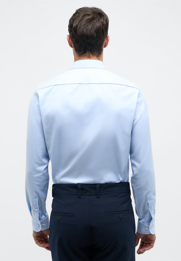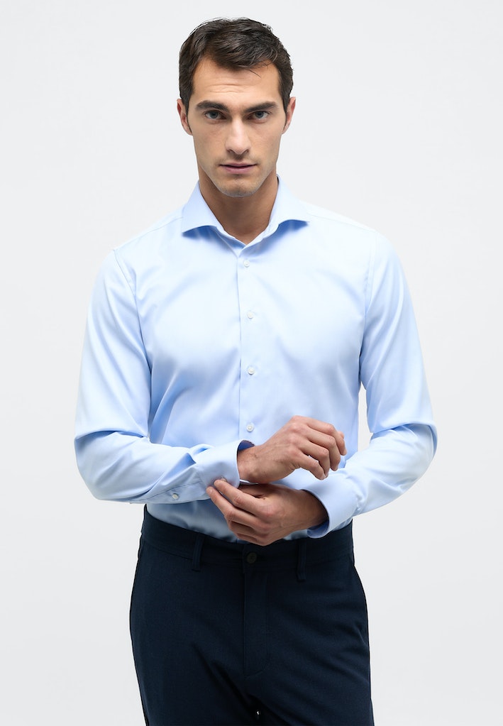 Dieses knitterfreie SLIM FIT Hemd ist mit einem Hai-Kragen gefertigt, durch die schmalere Passform ist es vor allem für schlankere Träger geeignet.