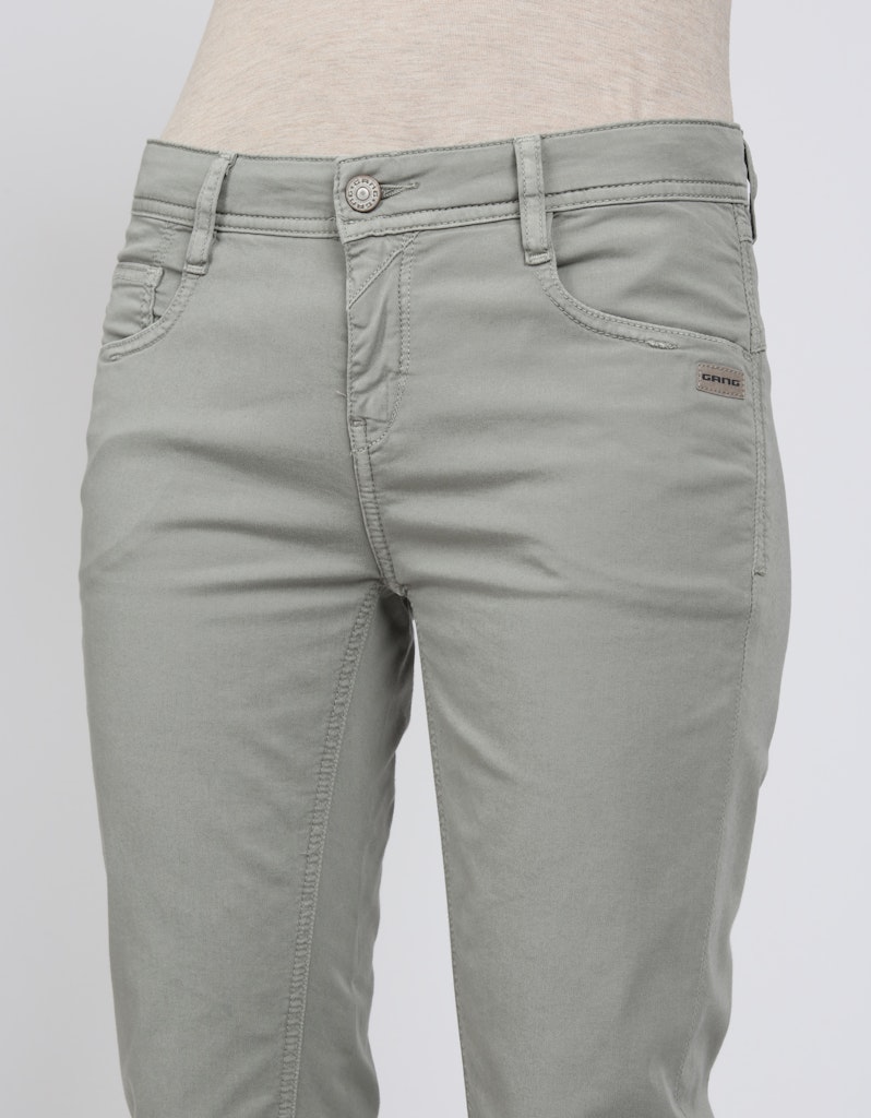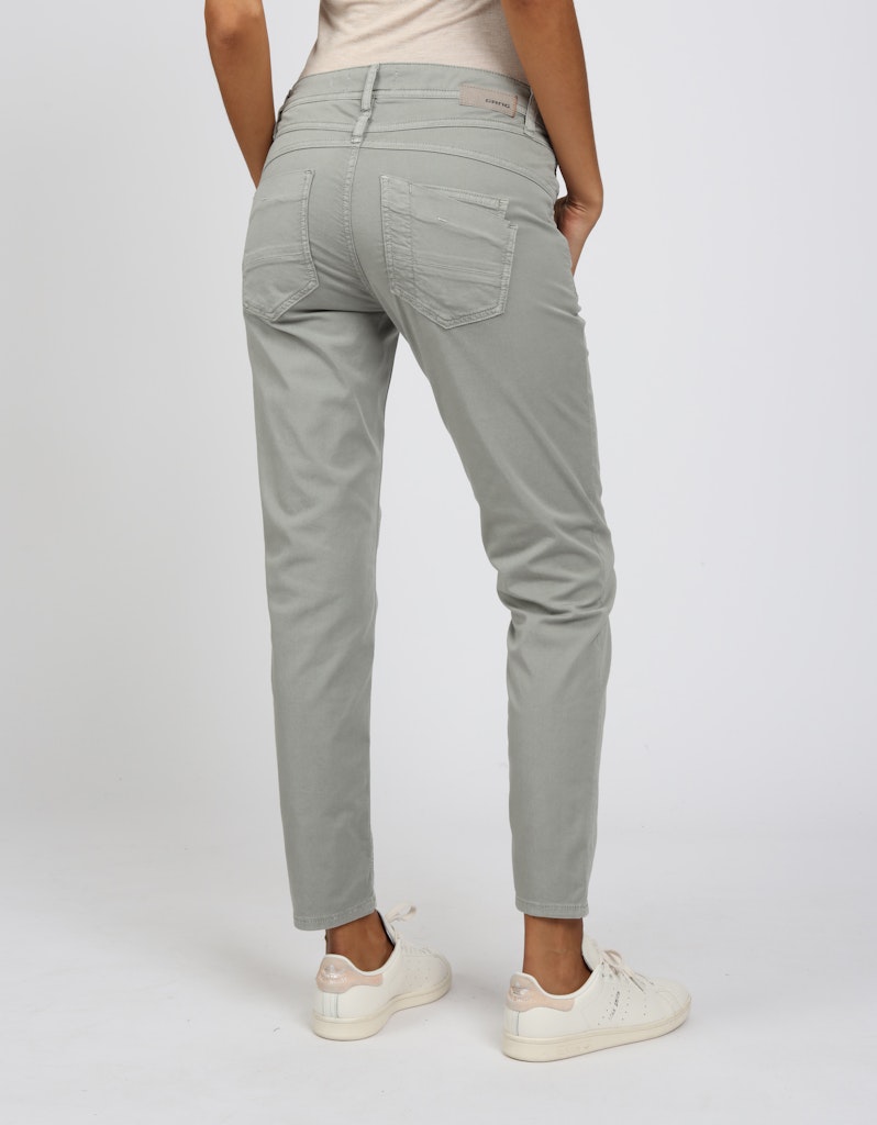 Leibhöhe und verkürzter Beinlänge. Gabardine Stretch: Robuster, elastischer Stoff. Knopf und Reißverschluss . Doppelte Passe am Rückteil und asymmetrische Gesäßtaschen. 5-Pocket-Style mit Dreieck-Detail am Vorderschlitz.