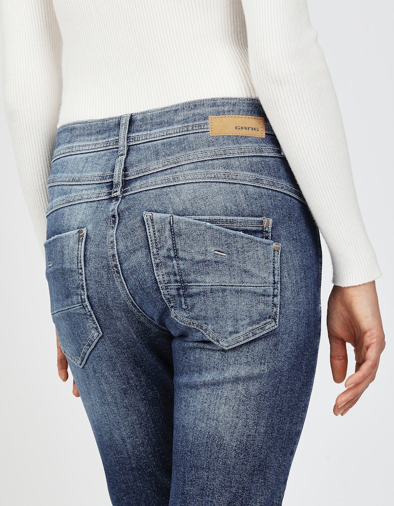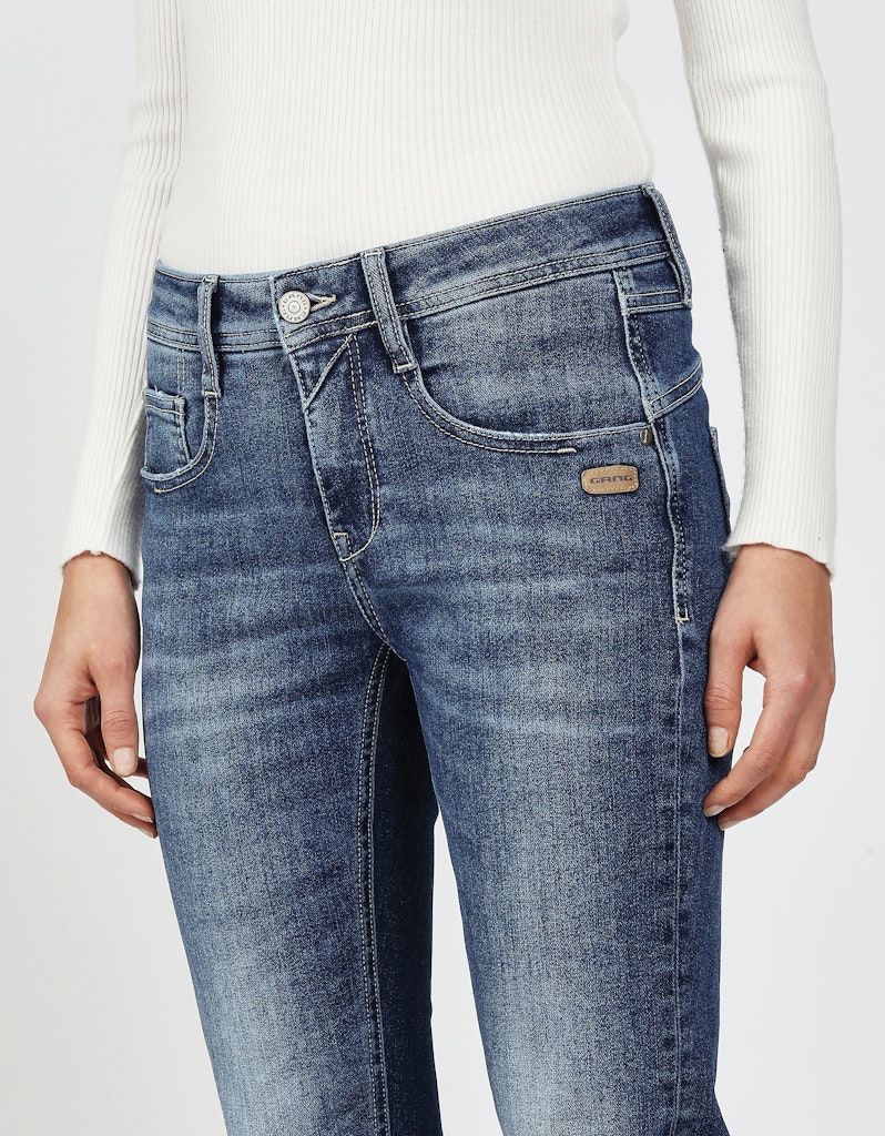 Relaxed Fit Jeans mit mittlerer Leibhöhe und normaler Beinlänge. Softer Denim. Feminine Silhouette. 5-Pocket Style mit Reißverschluss und Knopf. Komfortable Hüft- und Beinweite.