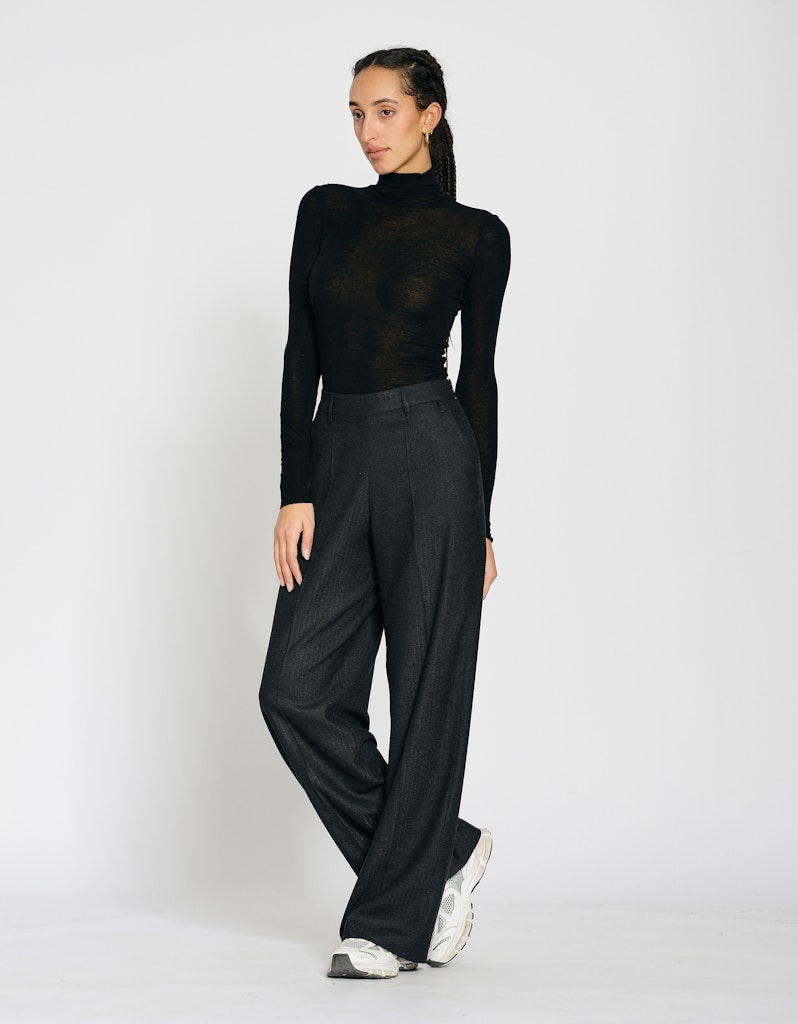 94JOANA ist eine locker geschnittene, hoch in der Taille sitzende Hose mit weitem geradem Beinverlauf.