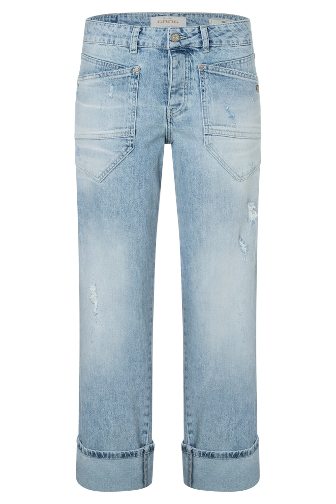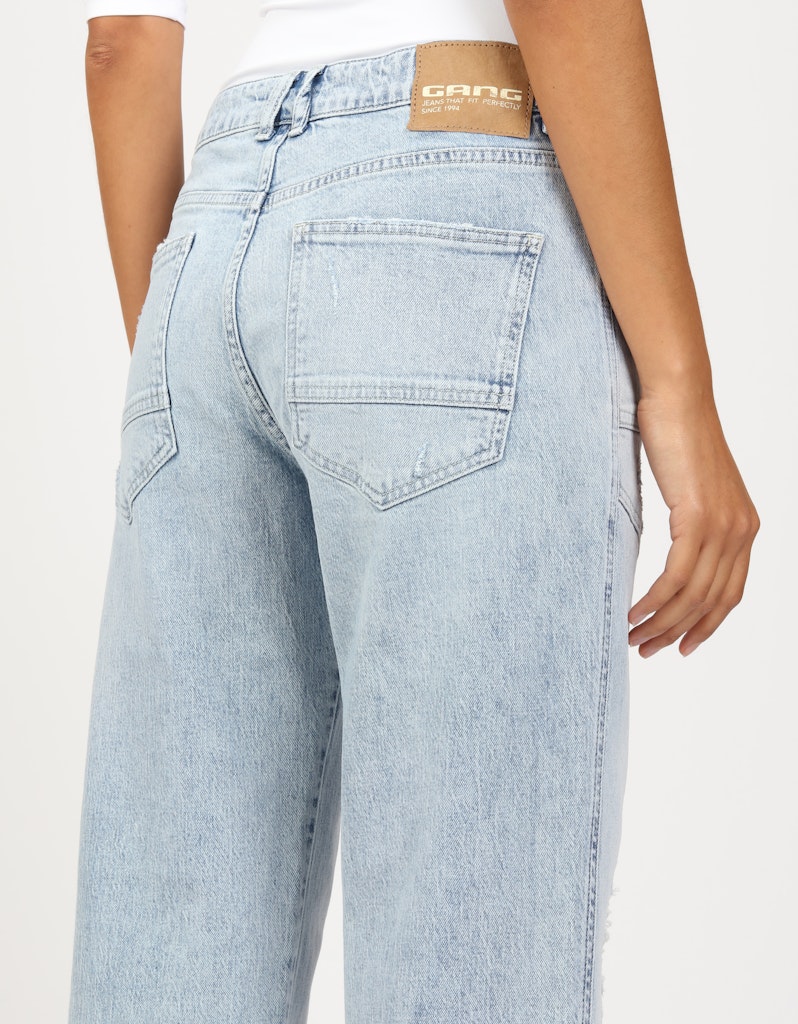 Wide Fit Jeans mit mittlerer Leibhöhe und normaler Beinlänge. Softer Denim. Modische, weite Passform. Übergroße Aufgesetzte Taschen. Breiter Aufschlag, der auch nach unten geklappt werden kann.
