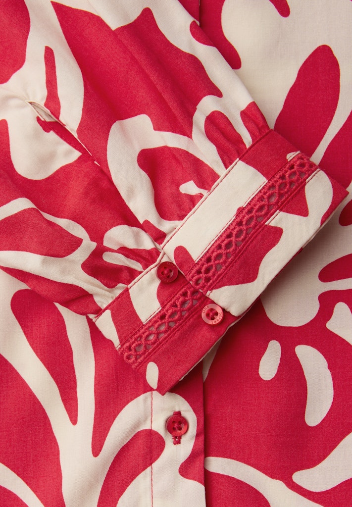 Diese Tunika von Street One für Damen verbindet sommerliche Leichtigkeit mit dekorativen Tapedetails an Schultern und Bündchen. Das florale Muster wirkt feminin und frisch, während der Split Neck dem Look eine entspannte Ausstrahlung gibt. Die leichte Viskosequalität trägt sich angenehm. Ein stilvolles Piece mit gerundetem Saum – perfekt für warme Tage. Viskosebluse Casual Split Neck 3/4-Arm Sommerliches Flair Material: 100% Viskose