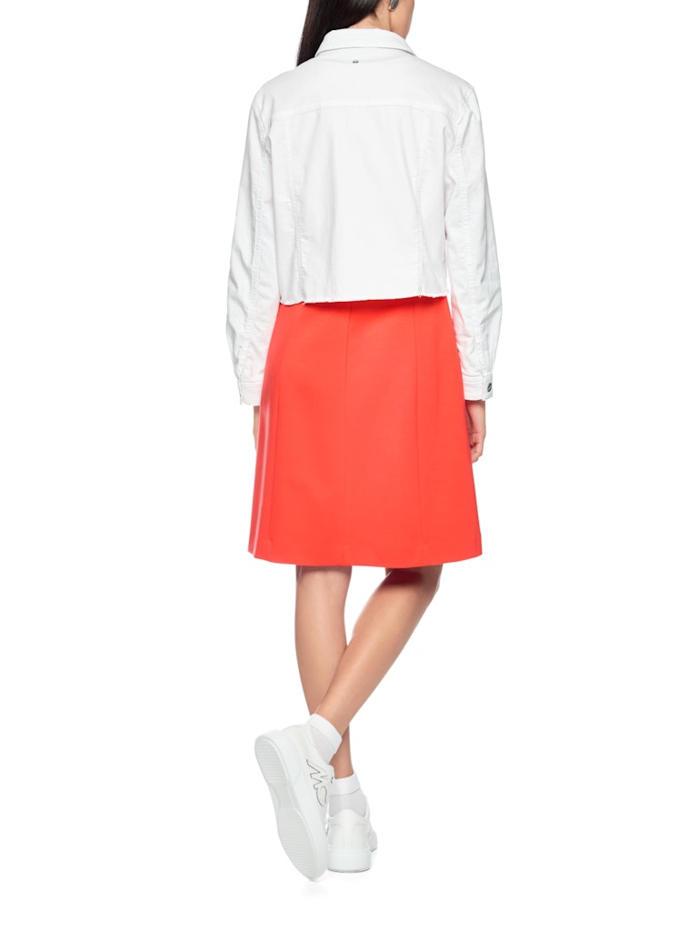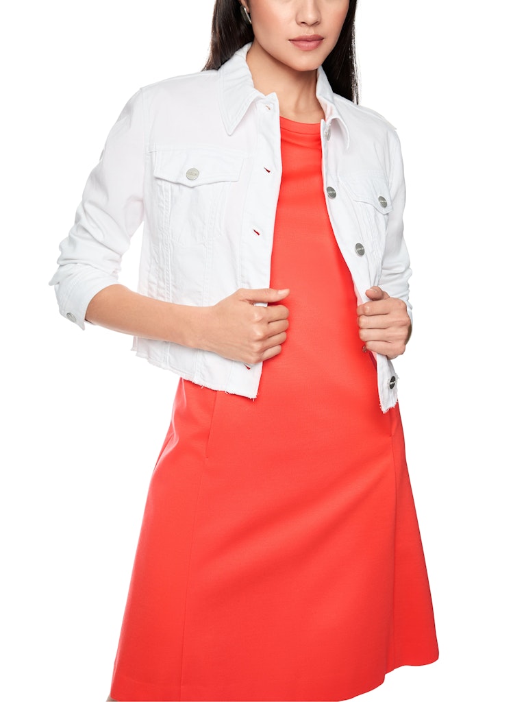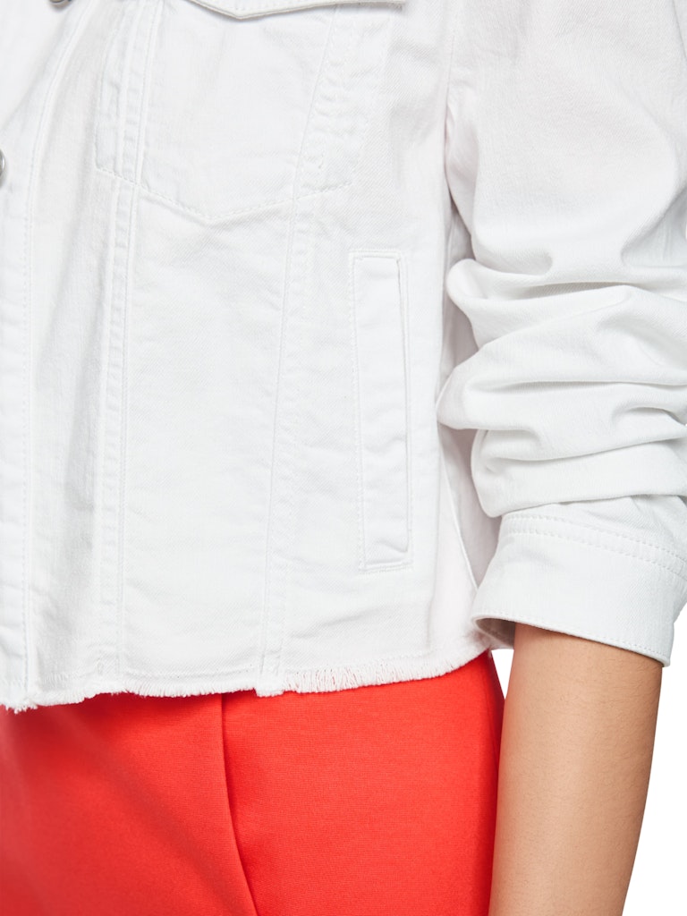 Kurze Jeansjacke aus Baumwollstretch|Moderne Jeansjacke aus bequemem Baumwollstretch mit kurzer, gerader Silhouette. Feine Fransendetails am Saum verleihen einen lässigen Look. Vier praktische Taschen und markante Logoknöpfe sorgen für authentischen Denim-Charakter. Die Spezialwaschung rundet den Style mit einem coolen, modernen Finish ab.|Kurze, gerade Silhouette|Vier Taschen|Logoknöpfe|Fransenverzierung|Das Model ist 179 cm groß und trägt N3/38.