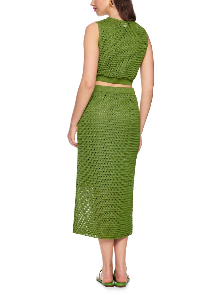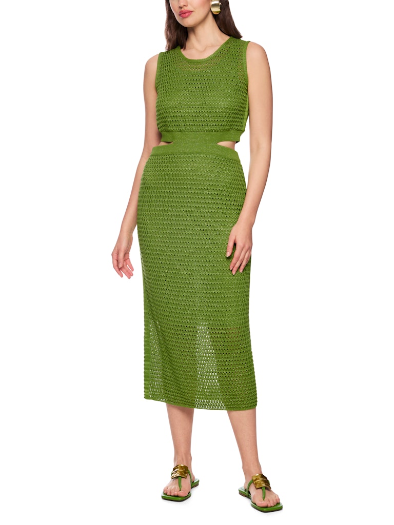 Ajourkleid "Rethink Together"|Ajourkleid aus Bio-Baumwolle mit feinem Viskose-Lurexgarn. Das Oberteil ist vorne an das Rockteil angenäht, seitliche und rückseitige Cut-outs sorgen für einen modernen Look. Ein Gummizug im Rockteil garantiert optimalen Sitz in der Taille. Das Kleid trägt das Nachhaltigkeitslabel "Rethink Together". Das Modell ist "Knitted in Germany": Das Verstricken der Garne auf hochmodernen Strickmaschinen und die Veredelung der Stoffe geschehen am Standort Deutschland.|Körperbetont|Knitted in Germany|Ärmellos|Tonal gefüttert|Das Model ist 179 cm groß und trägt N3/38.