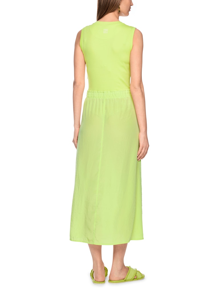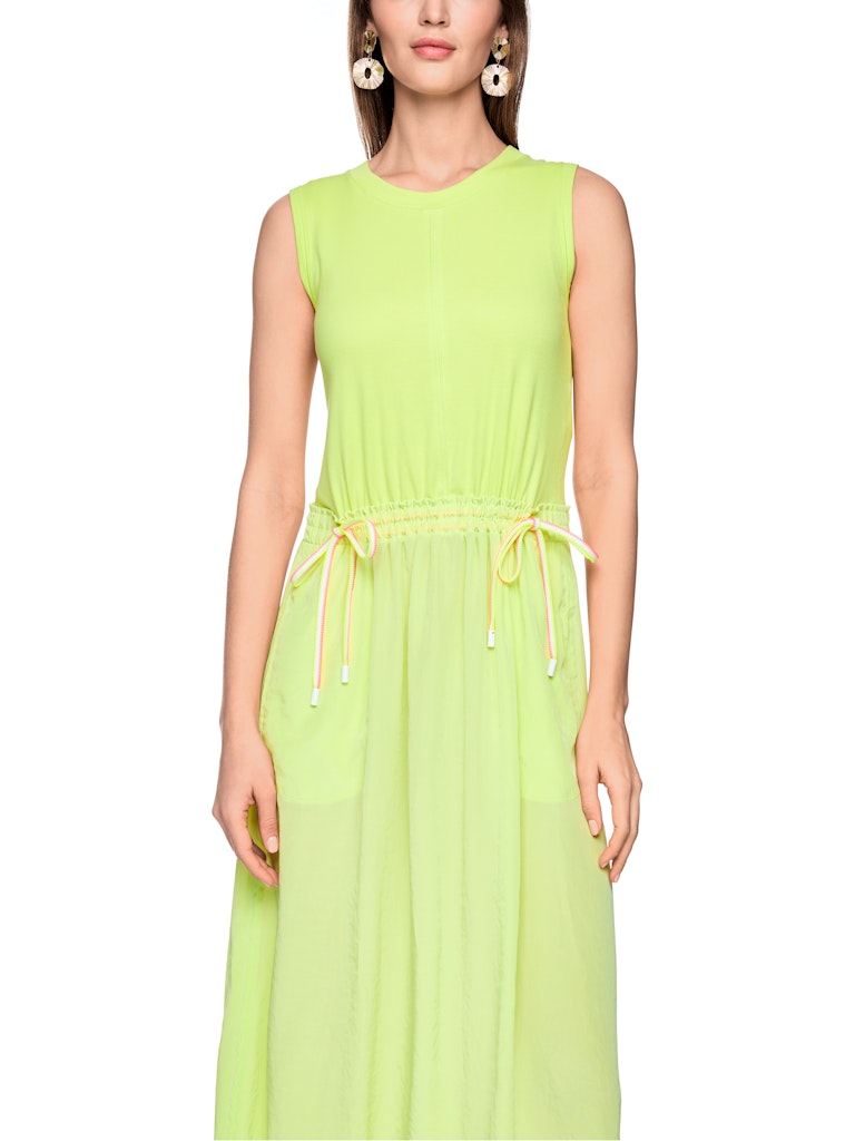 Ärmelloses Midikleid mit Tunnelzug|Ärmelloses Kleid in einer femininen Midilänge. Das Oberteil ist aus einer feinen Rippstrick-Qualität gefertigt und liegt angenehm am Körper. Der Rock besteht aus einer fließenden Webqualität. An der Hüfte ist der Rock abgesetzt und leicht gerafft. Ein Tunnelzug mit farblich abgesetzten Kordeln setzt einen modernen Akzent. Ideal für warme Tage und sommerliche Looks.|Leger geschnitten|Midilänge|Eingriffstaschen am Rock|Weich fließende Qualität|Das Model ist 179 cm groß und trägt N3/38.