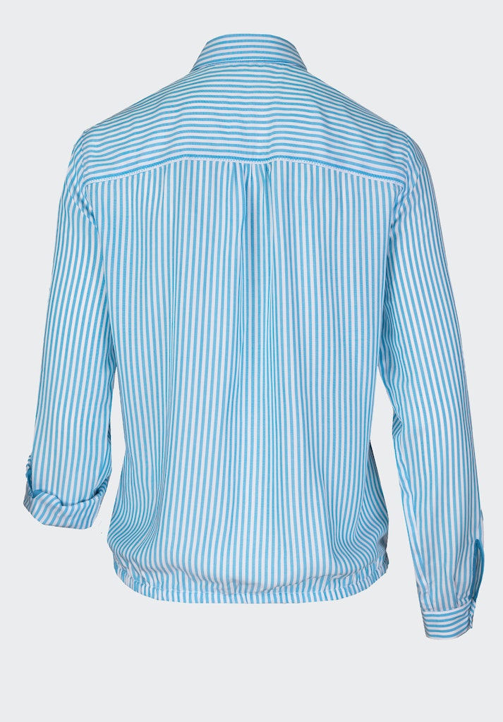 Unsere neue Schlupfbluse Anina überzeugt mit ihrem angesagten Streifen-Look in Trendfarbe! Dank der hundertprozentigen Viskose und der lockeren Passform trägt sich die Bluse mit dem Polokragen und halber Knopfleiste super angenehm. Eine kleine Brusttasche, der bequeme Gummizug am Saum und der Langarm, der zu einem 3/4 Arm hochgekrempelt werden kann, runden den lässigen Look ab. Damit lässt sich Anina zu vielen Outfits stylen - ganz leicht mit Sneakern und Jeans oder etwas schicker mit einem Blazer.