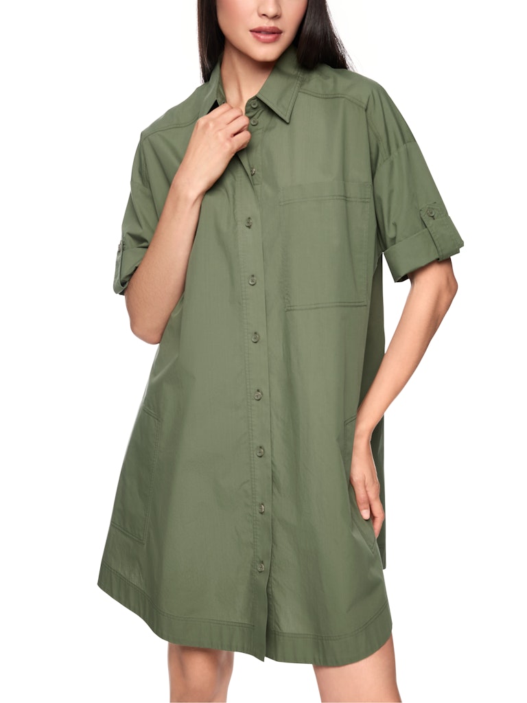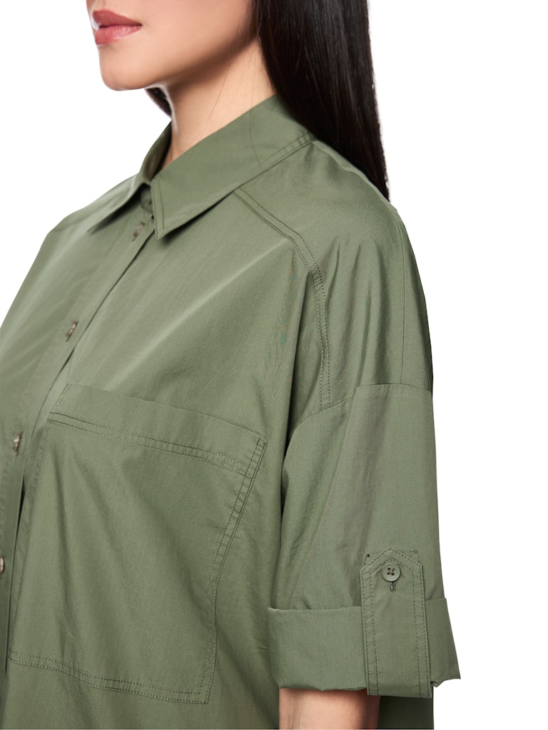 Hemdblusenkleid "Rethink Together"|Lockeres Hemdblusenkleid aus reiner Bio-Baumwolle. Das Kleid kommt mit entspanntem, leicht ausgestelltem Schnitt und überschnittenen Schultern. Weitere Details sind die seitlichen Taschen, die Knopfleiste und die gekrempelten Ärmel. Das Modell wird verantwortungsbewusst produziert und trägt das Nachhaltigkeitslabel "Rethink Together".|A-Linie|Rethink Together|Reine Baumwolle|Seitliche Taschen|Das Model ist 179 cm groß und trägt N3/38.
