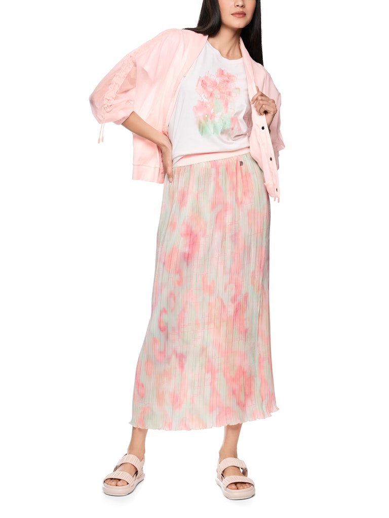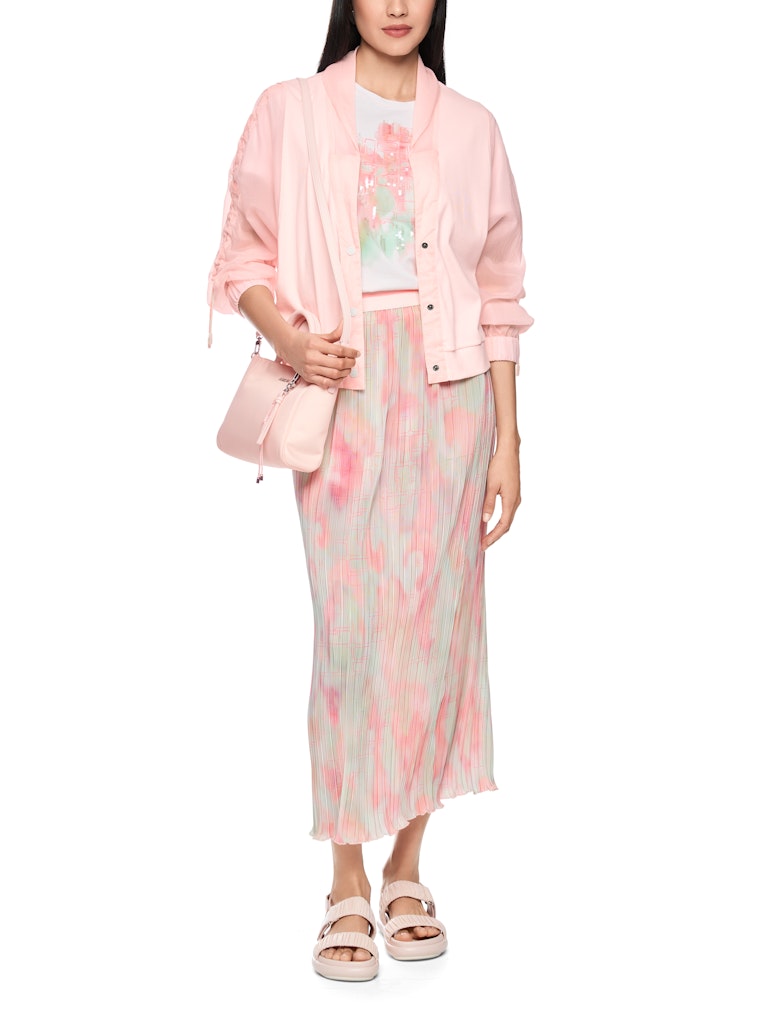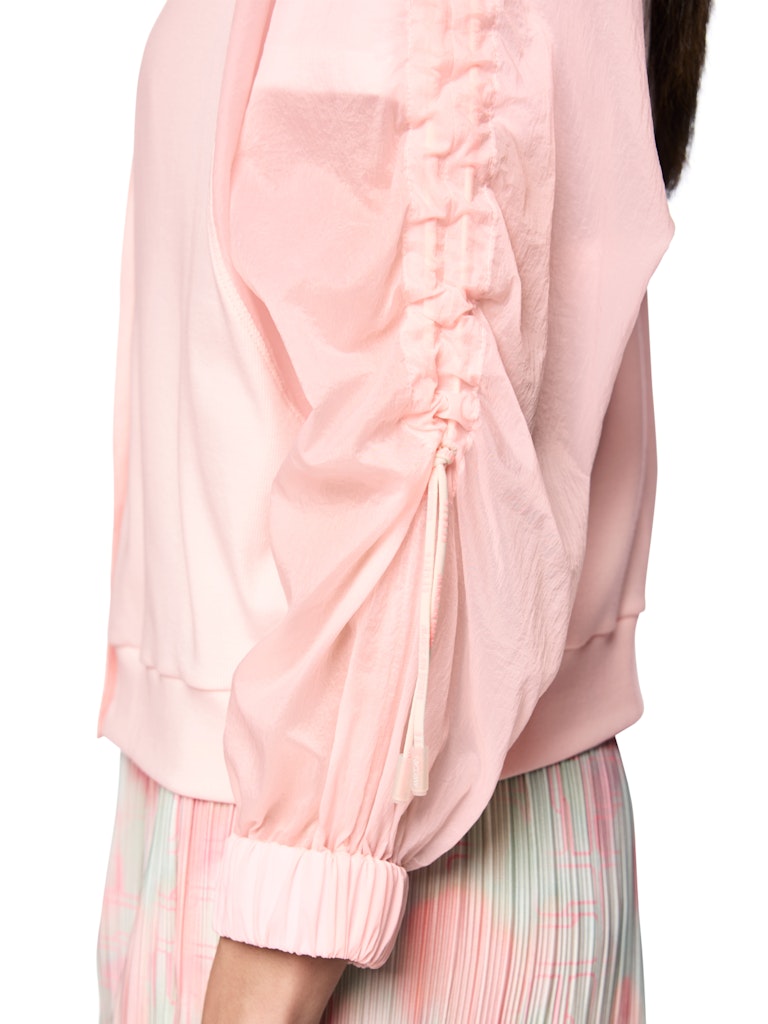 Leichte Jacke im Materialmix|Diese luftig-leichte Jacke ist ein echter Hingucker. Sie überzeugt mit ihrem weiten Schnitt und dem modernen Materialmix. Die Ärmel sowie der Kragen sind aus einem leicht transparenten Material gefertigt. Raffungen ergänzen den Look und sorgen für einen sportlichen Touch. Dadurch können die Ärmel beliebig verlängert oder verkürzt werden. Der übrige Teil ist aus einem dünnen Baumwoll-Ripp gefertigt. Geschlossen wird die Jacke mit Druckknöpfen, die mit dem Marc Cain Sports Logo versehen sind.|Weite Form|Transparente Ärmel|Materialmix|Mit Raffungen|Das Model ist 179 cm groß und trägt N3/38.
