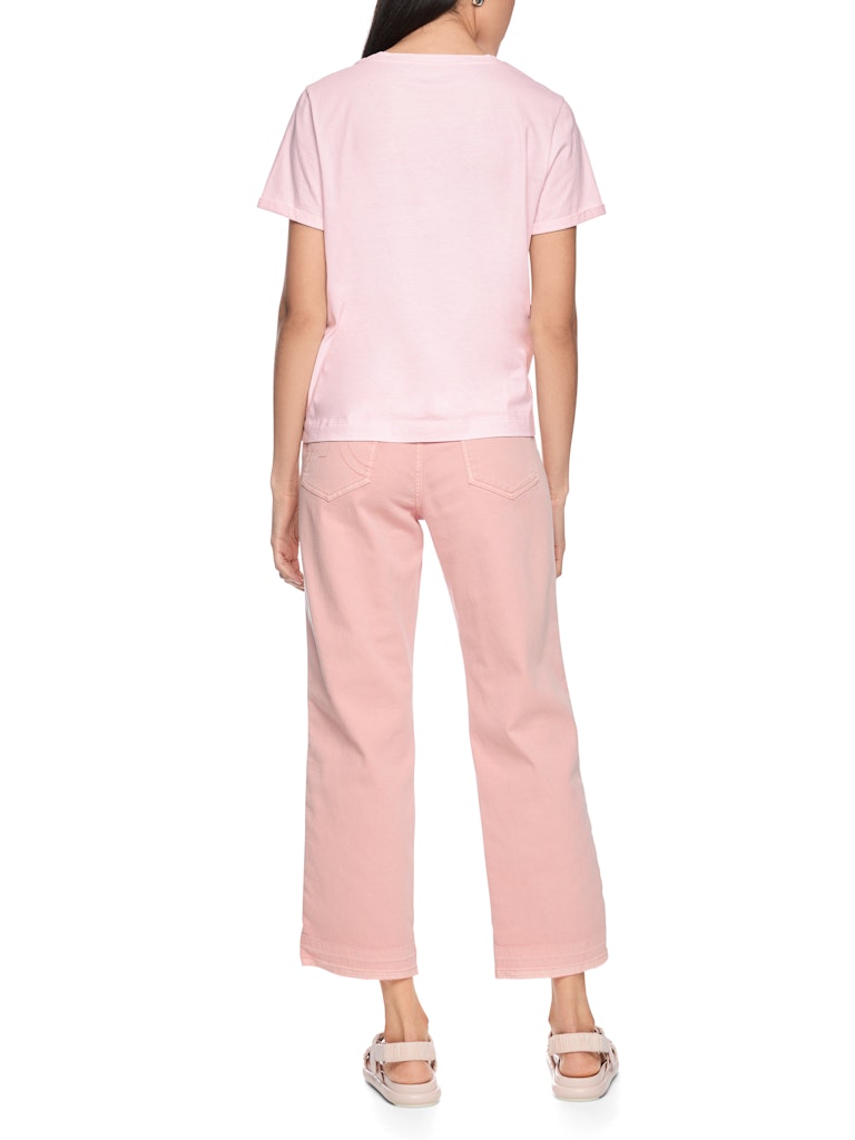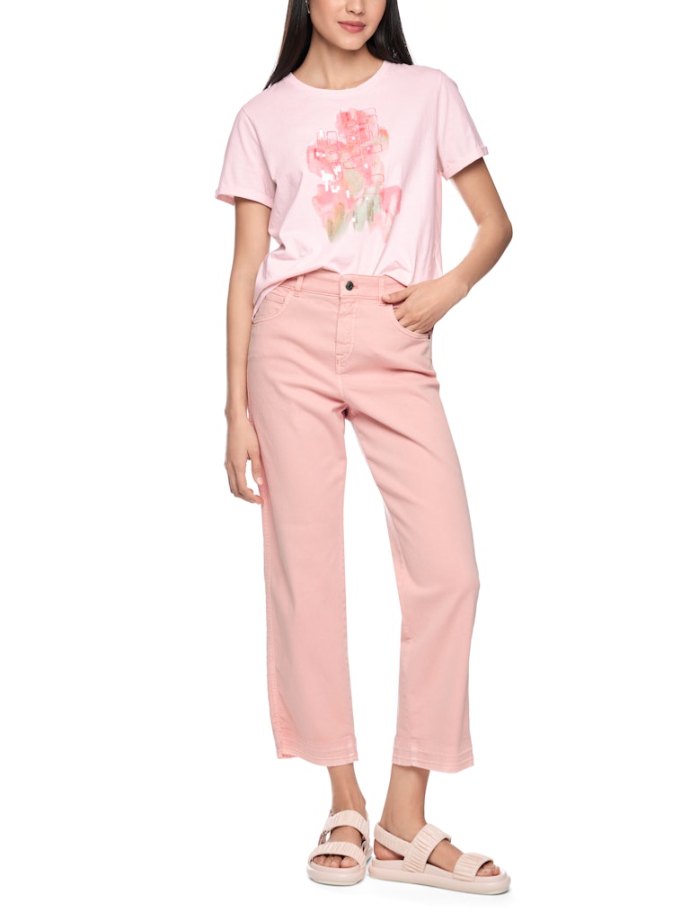 Baumwollshirt mit Applikation|Lockeres T-Shirt aus reiner Baumwolle mit farbigem Aufdruck. Die frühlingshaften Farben werden ergänzt durch Pailetten und Stickereien. Weitere Details sind der Rundhals und die kurzen Ärmel, die einen kleinen Umschlag am Saum besitzen. Ein perfektes Basic Shirt für den Alltag.|Lockerer Schnitt|Rundhals|Mit Pailletten|Kurzarm|Das Model ist 179 cm groß und trägt N3/38.
