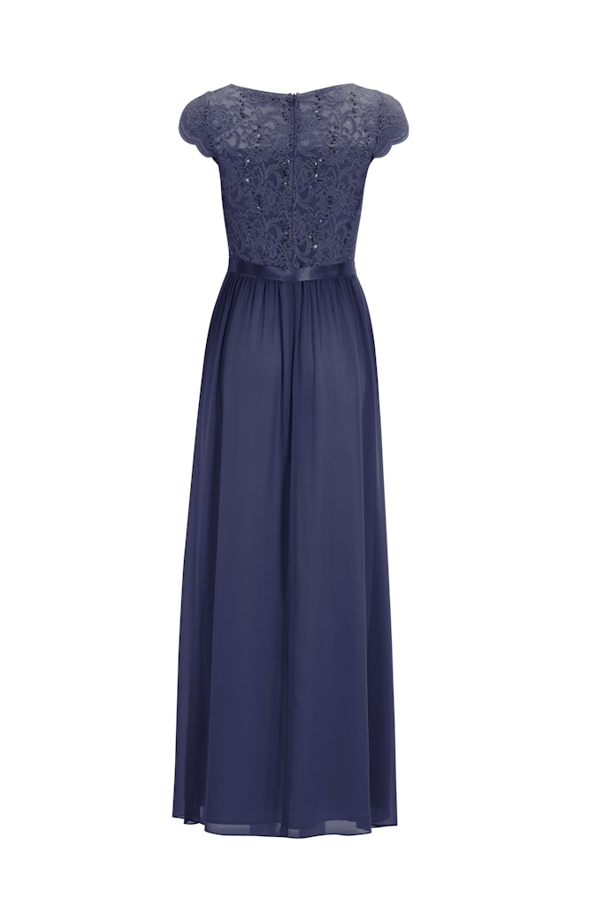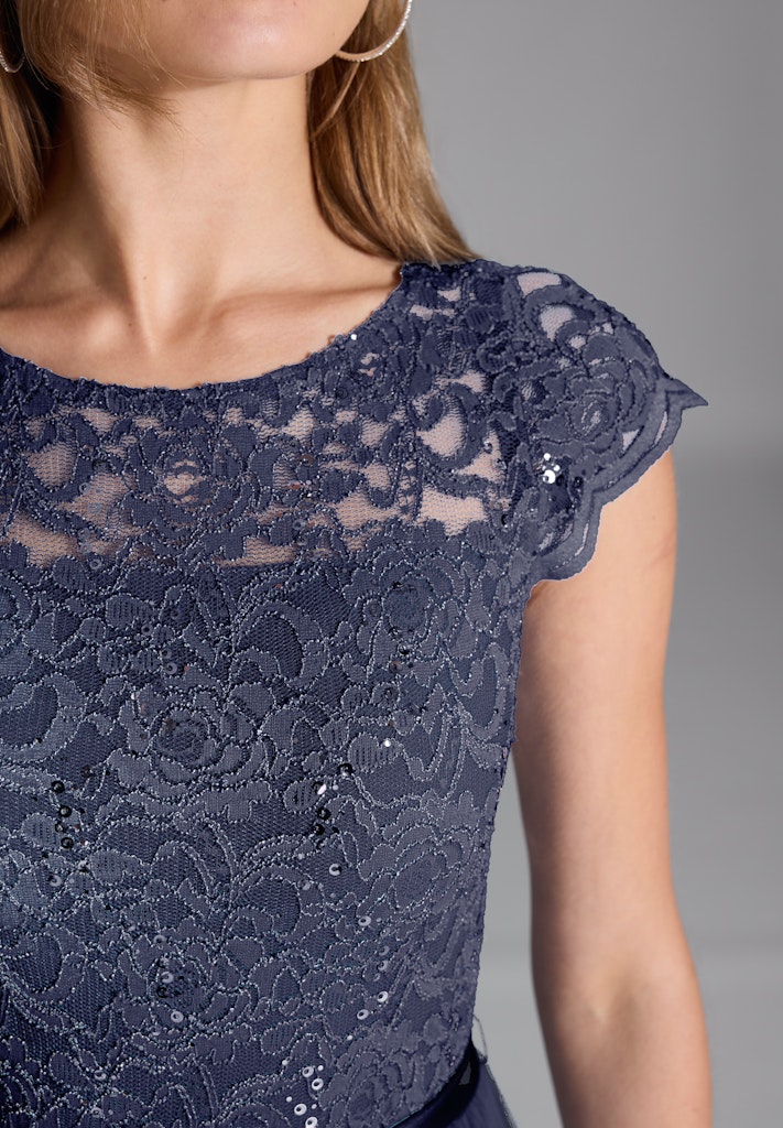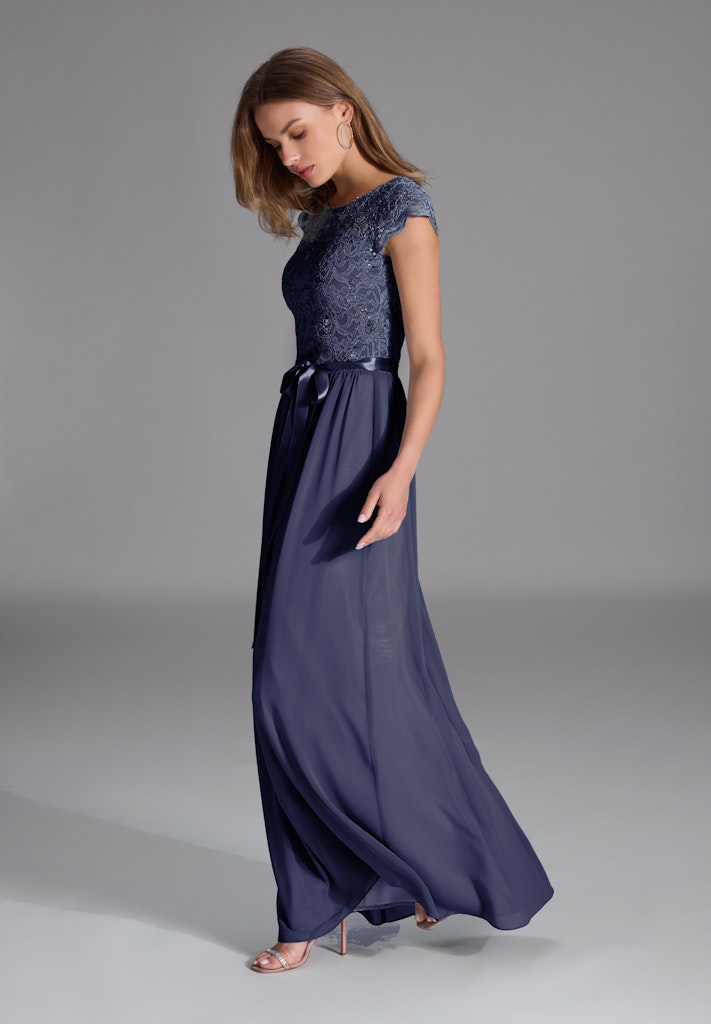 Abendkleid aus Chiffon mit paillettenbesetztem Spitzenoberteil