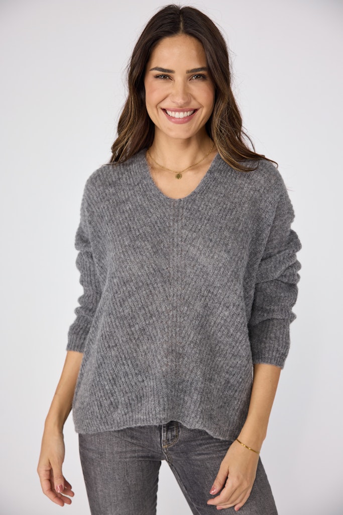 Pullover V-Ausschnitt leicht überschnittene Schulter mit Mittelnaht