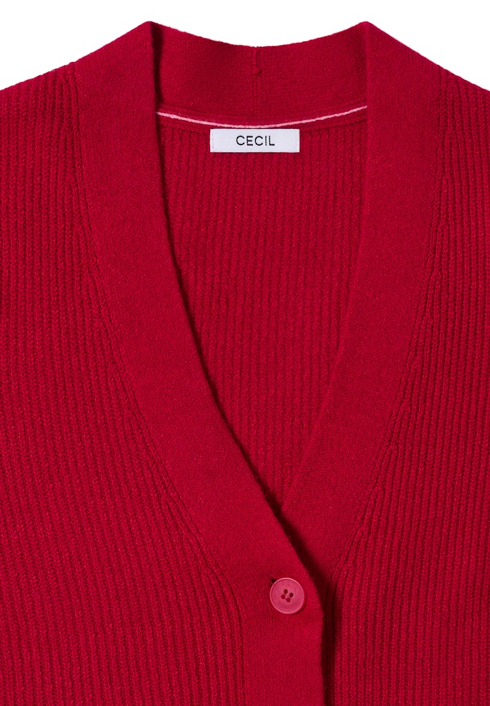Der Cardigan von CECIL für Damen überzeugt mit seiner weichen Baumwollqualität und liebevollen Strukturstrick-Details. Der V-Ausschnitt mit Knopfleiste und die gerippten Ärmelabschlüsse verleihen der Strickjacke einen klassischen und zugleich modernen Touch. Eine ideale Wahl für bequeme, aber stilvolle Outfits mit Charakter. Strickjacke mit Knopfleiste V-Ausschnitt Langarm mit Rippbündchen Strukturstrick Details Softer Baumwollmix Material: 37% Baumwolle, 34% Polyacryl, 26% Polyester, 3% Elasthan