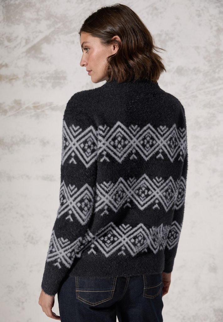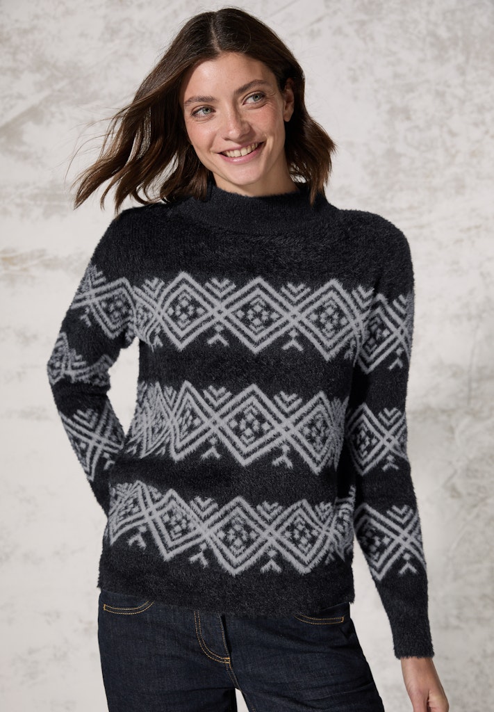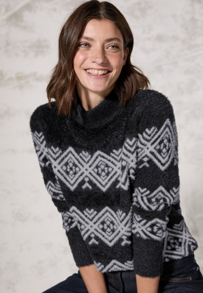 Der Federgarn-Pullover von CECIL für Damen ist weich und bequem, mit einem Turtleneck und grafischem Muster. Lange Ärmel mit Bündchen und der weiche Materialmix sorgen für hohen Tragekomfort. Perfekt für stilvolle und gemütliche Tage. Gemusterter Pullover Turtleneck Langarm mit Bündchen Grafisches Muster Weich und bequem Material: 83% Polyester, 17% Baumwolle