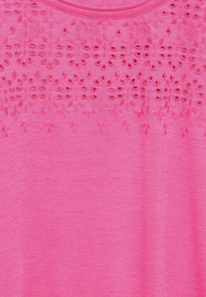 Das Sommer-T-Shirt von CECIL für Damen ist ein lässiges Kurzarmshirt mit einem praktischen Gummibund für eine bequeme Passform. Es zeichnet sich durch feminine Lochstickerei-Details aus, die dem Shirt eine charmante und verspielte Note verleihen. Hergestellt aus bequemer Jersey-Qualität bietet es ein angenehmes Tragegefühl und ist ideal für warme Sommertage geeignet. Kurzarmshirt Gummibund Feminine Lochstickerei Bequeme Jersey-Qualität Material: 55% Polyester, 45% Viskose