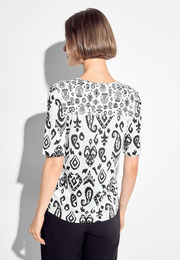 Das Tunikashirt von CECIL für Damen präsentiert sich als ein modisches Piece mit einem femininen V-Ausschnitt, der mit einem Band verziert ist. Der Ornament Mustermix verleiht ihm eine moderne Note. Aus einer weichen Baumwoll-Modalmischung bietet die Tunika ein angenehmes Tragegefühl und ist ideal für den Sommer geeignet. Shirt Tunikastyle Ornament Mustermix V-Ausschnitt Material: 50% Modal, 50% Baumwolle