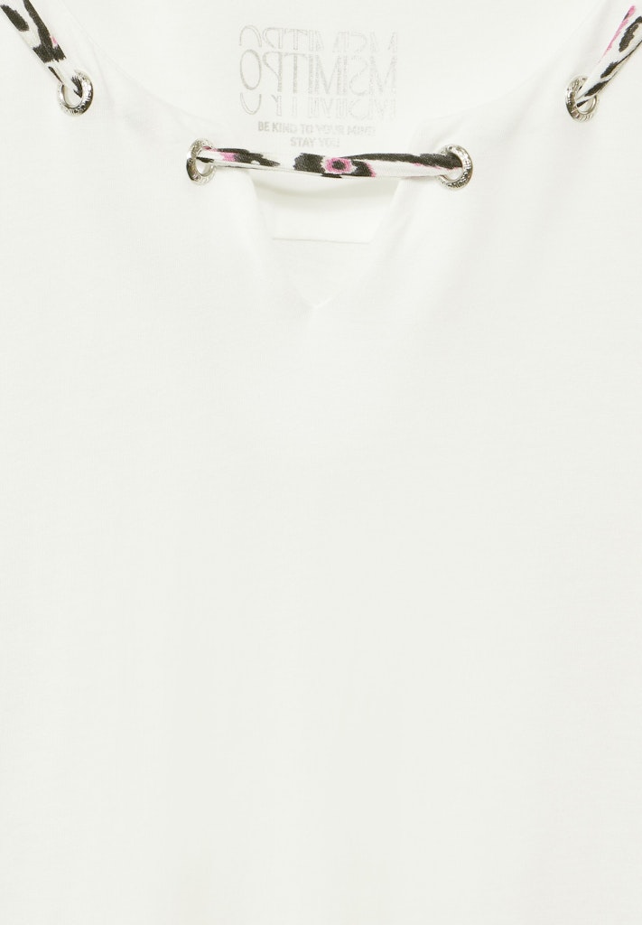 Das lässig moderne T-Shirt von CECIL für Damen präsentiert sich mit einem geschlitzten Ausschnitt und einem trendigen Gummibund für eine bequeme Passform. Ein buntes Stringdetail am Ausschnitt verleiht dem Shirt eine verspielte Note und setzt einen attraktiven Akzent. Hergestellt aus hochwertiger Baumwoll-Modal-Jersey-Qualität bietet dieses T-Shirt nicht nur einen modischen Look, sondern auch ein angenehmes Tragegefühl für den Alltag. T-Shirt Gummibund Stringdetail mit Print Geschlitzter Rundhalsausschnitt Material: 50% Modal, 50% Baumwolle
