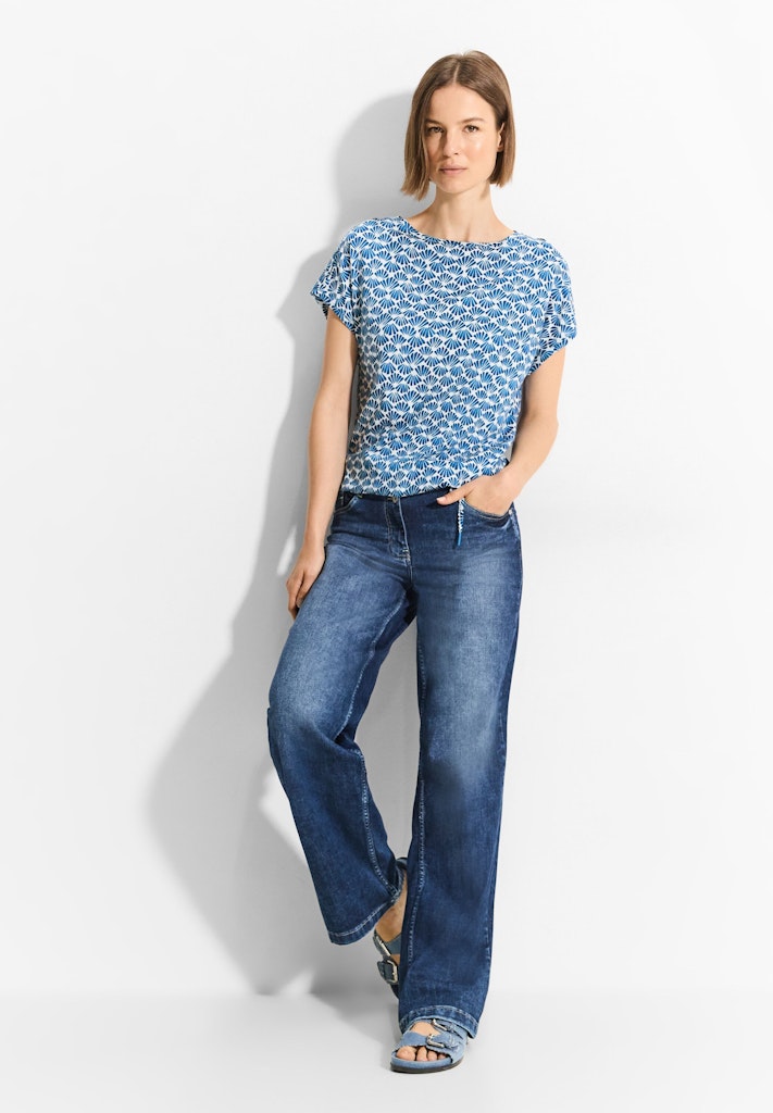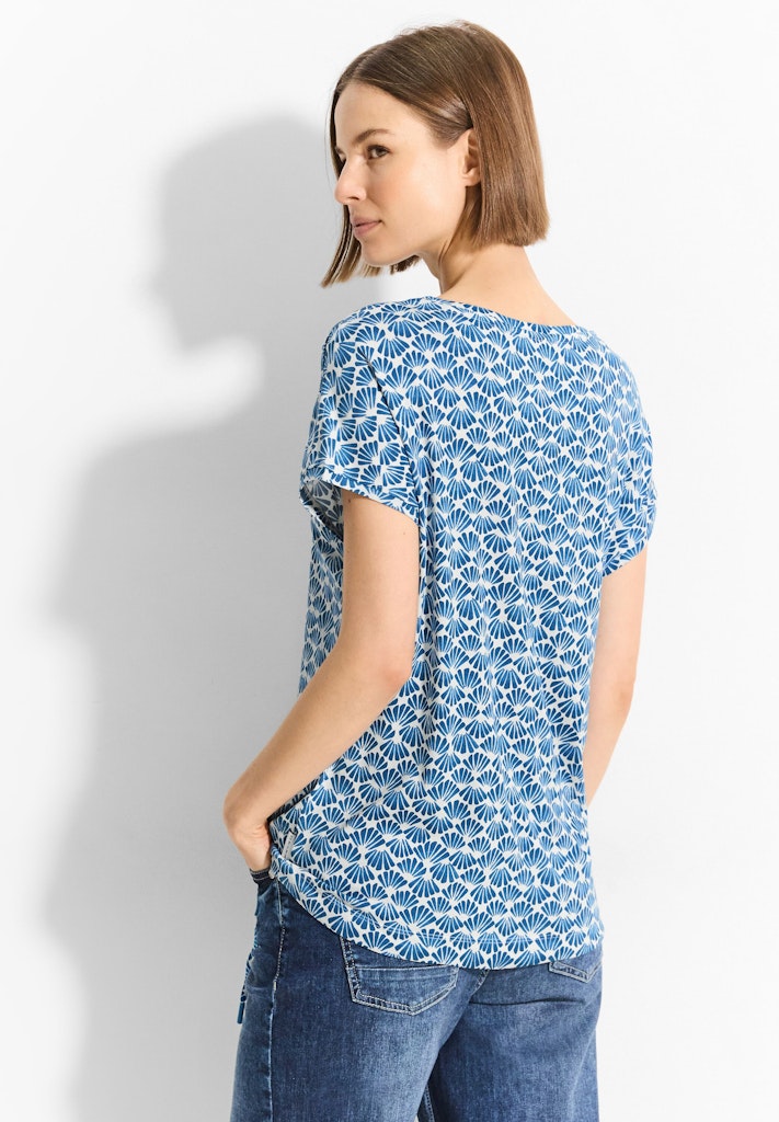 Das luftige T-Shirt mit Print von CECIL für Damen ist ein sommerliches Shirt mit einem eleganten U-Boot-Ausschnitt und einem Tunnelzug im Saum für individuelle Anpassung. Luftige Schlitze an der Schulter verleihen dem Shirt eine luftige Note und sorgen für zusätzliche Bewegungsfreiheit. Hergestellt aus einer weichen Baumwoll-Modalmischung bietet es angenehmen Tragekomfort für warme Tage. Sommershirt U-Boot Ausschnitt Tunnelzug im Saum Luftige Schlitze an der Schulter Softe Baumwoll- Modalmischung Material: 50% Modal, 50% Baumwolle