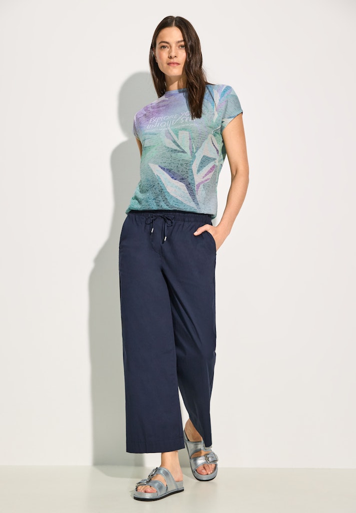 Mit seiner Ausbrenner Optik und dem Gummibund ist dieses Sommershirt von CECIL für Damen nicht nur bequem, sondern auch stylisch. Das Wording auf grafischem Muster verleiht ihm eine zusätzliche modische Note. So ist das Burn-Out T-Shirt mit Print und Rundhalsausschnitt eine ideale Ergänzung für deine Garderobe. Sommershirt Rundhals Ausbrenner Optik Gummibund Wording auf grafischem Muster Material: 65% Polyester, 35% Viskose