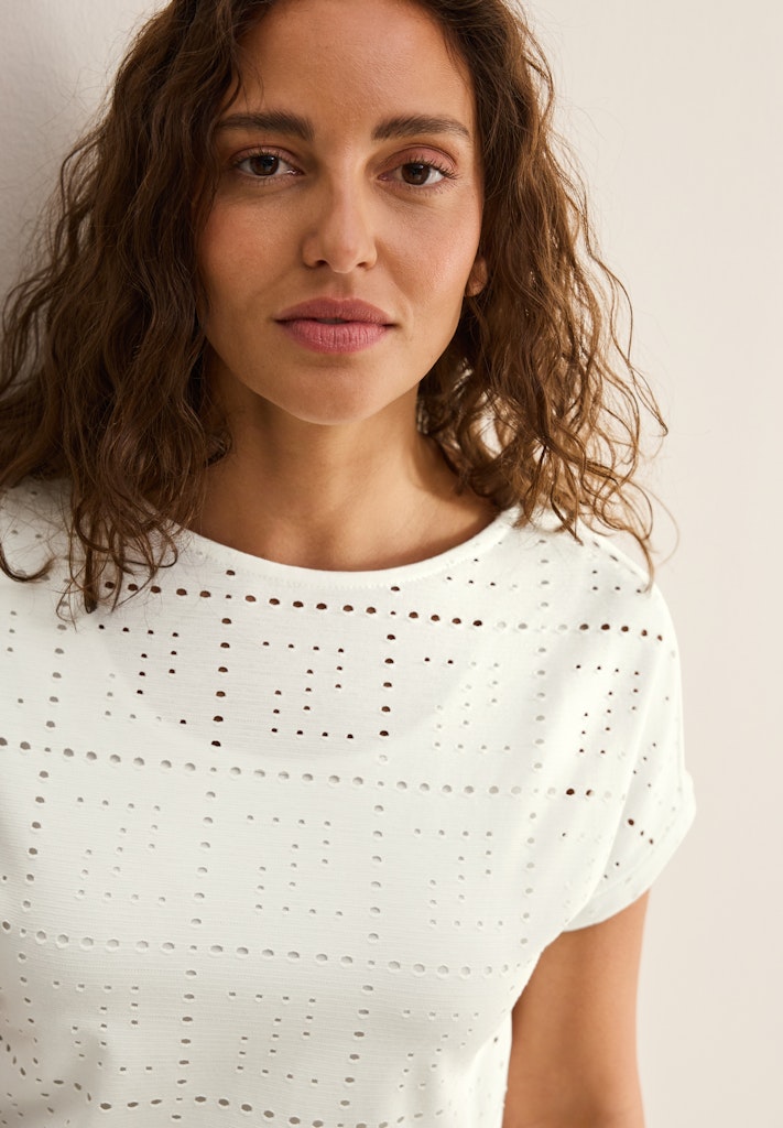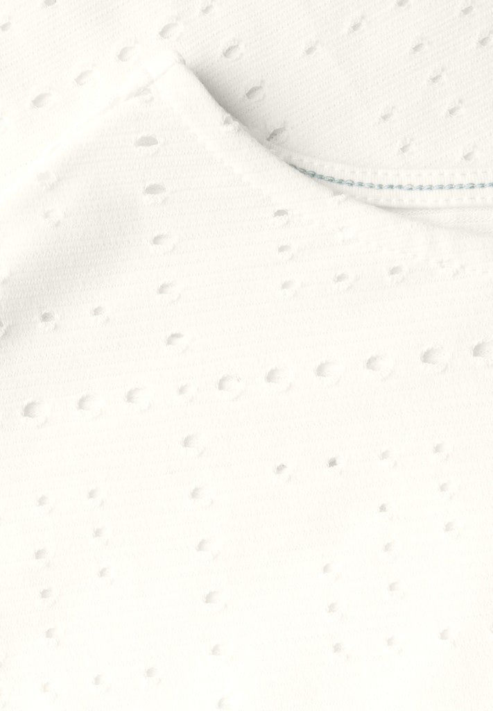 Dieses Ajour Shirt von CECIL für Damen begeistert mit seinem modischen Lochmuster und einem femininen U-Boot-Ausschnitt. Die kurzen Ärmel unterstreichen den frischen Look. Der Materialmix mit Stretchanteil bietet eine angenehme Passform und hohen Tragekomfort. Ajour Shirt U-Boot-Ausschnitt Kurzarm Lochmuster Materialmix mit Stretchanteil Material: 62% Polyester, 33% Viskose, 5% Elasthan