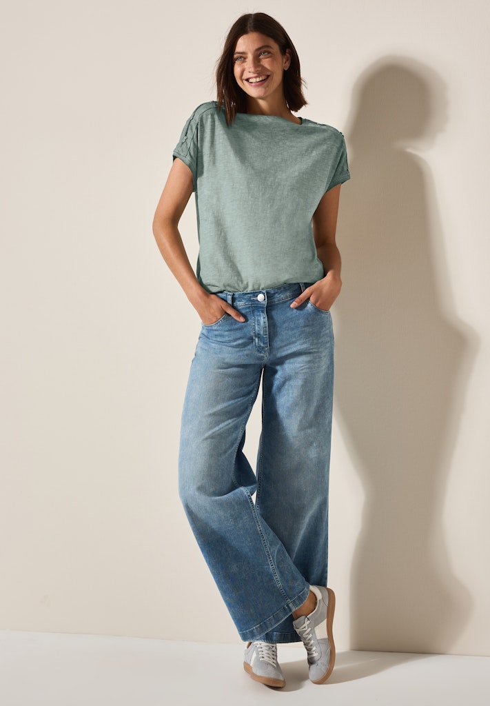 Dieses Shirt von CECIL für Damen punktet mit einer angesagten Washed-Optik und der angenehmen Baumwoll-Qualität. Der U-Boot-Ausschnitt und die Knopfdetails an den Schultern setzen modische Akzente. Ein lässiges Lieblingsstück für den Alltag! Shirt im Washed-Look U-Boot-Ausschnitt Kurzarm Knopfdetail an den Schultern Angenehme Baumwollqualität Material: 100% Baumwolle
