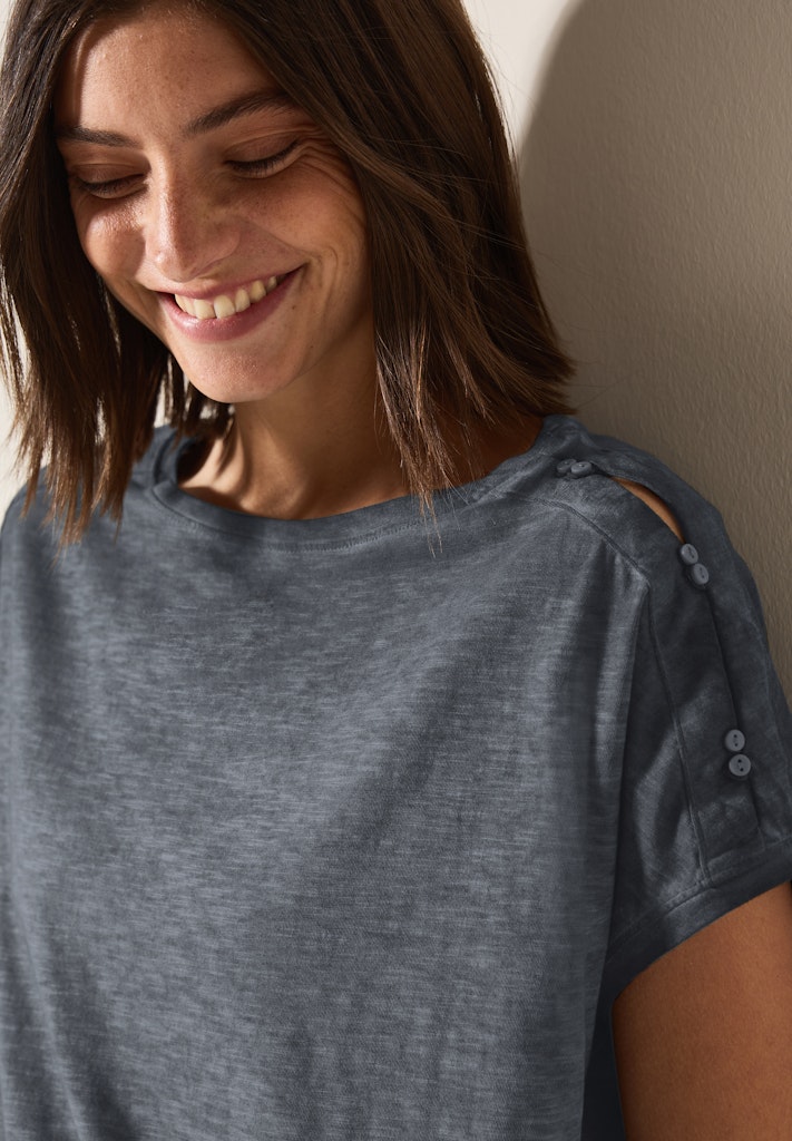 Dieses Shirt von CECIL für Damen punktet mit einer angesagten Washed-Optik und der angenehmen Baumwoll-Qualität. Der U-Boot-Ausschnitt und die Knopfdetails an den Schultern setzen modische Akzente. Ein lässiges Lieblingsstück für den Alltag! Shirt im Washed-Look U-Boot-Ausschnitt Kurzarm Knopfdetail an den Schultern Angenehme Baumwollqualität Material: 100% Baumwolle