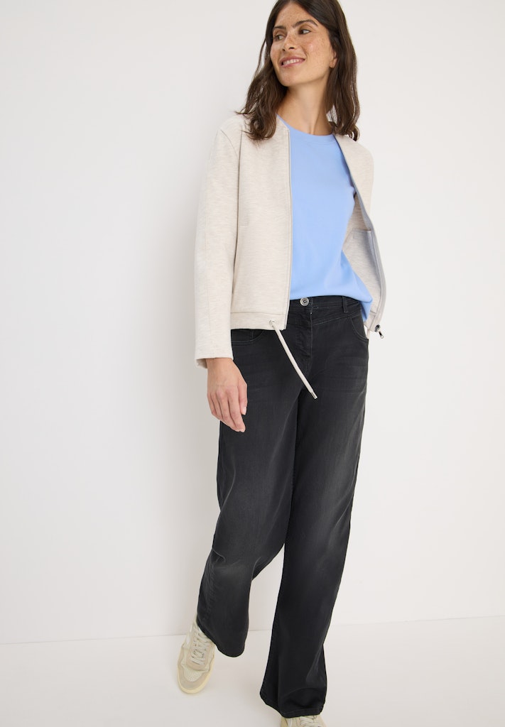 Longsleeve with roundneck and slit at cf, front woven fabric