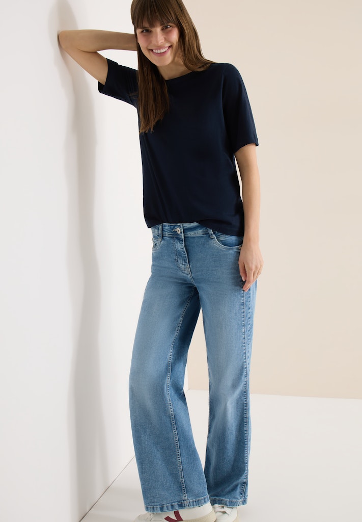 Dieses T-Shirt von CECIL für Damen ist ein vielseitiger Allrounder für deine Garderobe. Der U-Boot-Ausschnitt wirkt modern und feminin. Reine Baumwolle sorgt für ein natürliches, angenehmes Tragegefühl. Ideal zum Kombinieren für entspannte Casual-Looks. Baumwollshirt Casual U-Boot-Ausschnitt Kurzarm Vielseitiger Allrounder Material: 100% Baumwolle
