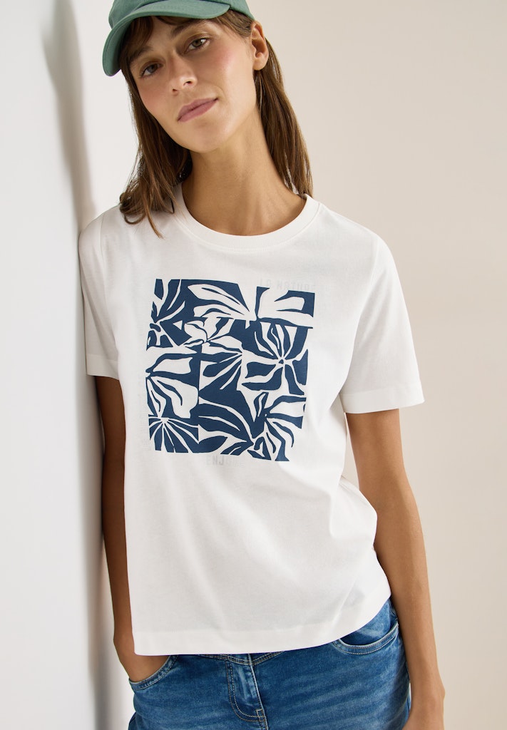 Dieses T-Shirt von CECIL für Damen bringt mit seinem floralen Frontprint frische Akzente in deinen Look. Reine Baumwolle sorgt für ein angenehmes und natürliches Tragegefühl. Rundhals und kurze Ärmel machen das Shirt besonders unkompliziert. Perfekt für entspannte Alltags-Outfits. Baumwollshirt Casual Rundhals Kurzarm Florales Motiv Material: 100% Baumwolle