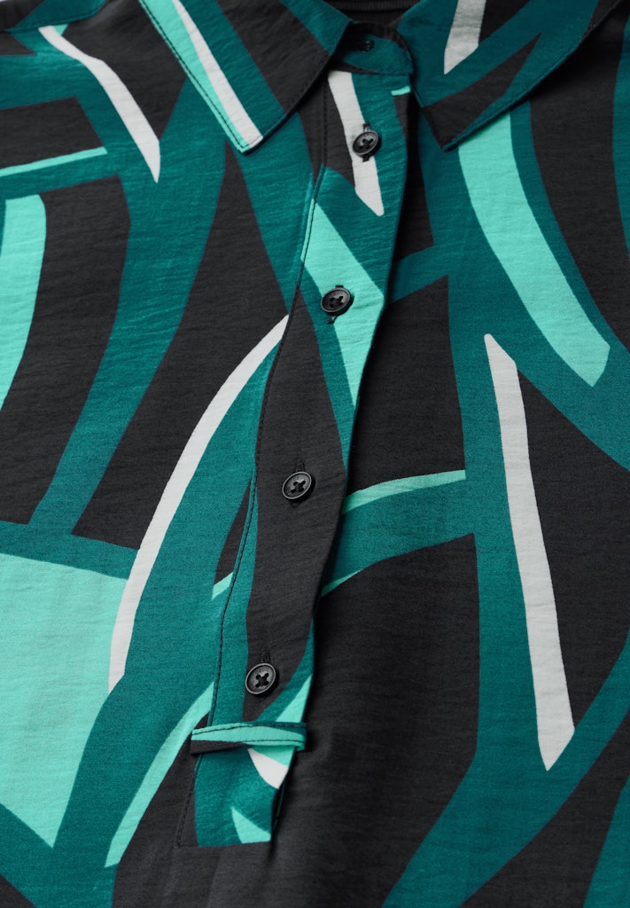 Diese bedruckte Bluse von CECIL für Damen bringt mit ihrem grafischen Muster und dem klassischen Hemdkragenmodische Akzente in deinen Kleiderschrank. Der angenehme Materialmix sorgt für hohen Tragekomfort. Langarmbluse Hemdkragen Dekorative Knopfleiste Grafisches Muster Angenehmer Materialmix Material: 85% Modal, 15% Polyester