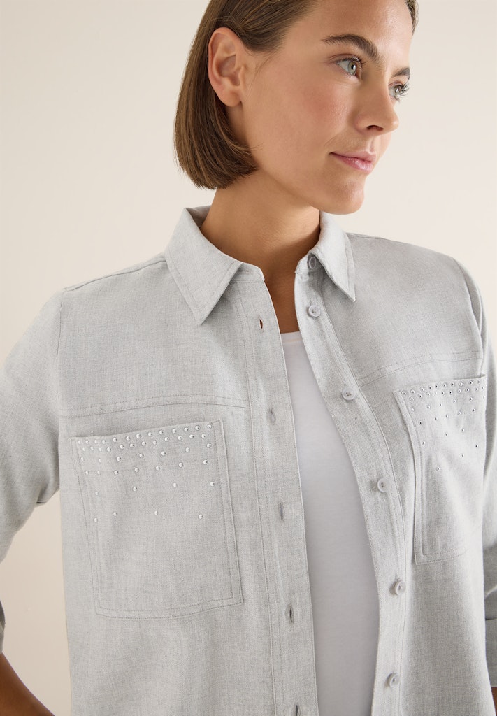 Mit ihrer soften Flanellqualität und den Nieten an den Brusttaschen bringt diese Hemdbluse von CECIL für Damen modischen Western-Charme in deinen Look. Die reine Baumwolle, klassische Knopfleiste und Manschetten mit Knopf runden das Design ab. Ideal für lässige Casual-Styles. Hemdbluse mit Knopfleiste Softe Flanellqualität Brusttaschen mit Nieten Reine Baumwolle Langarm mit Bündchen und Knopf Material: 100% Baumwolle