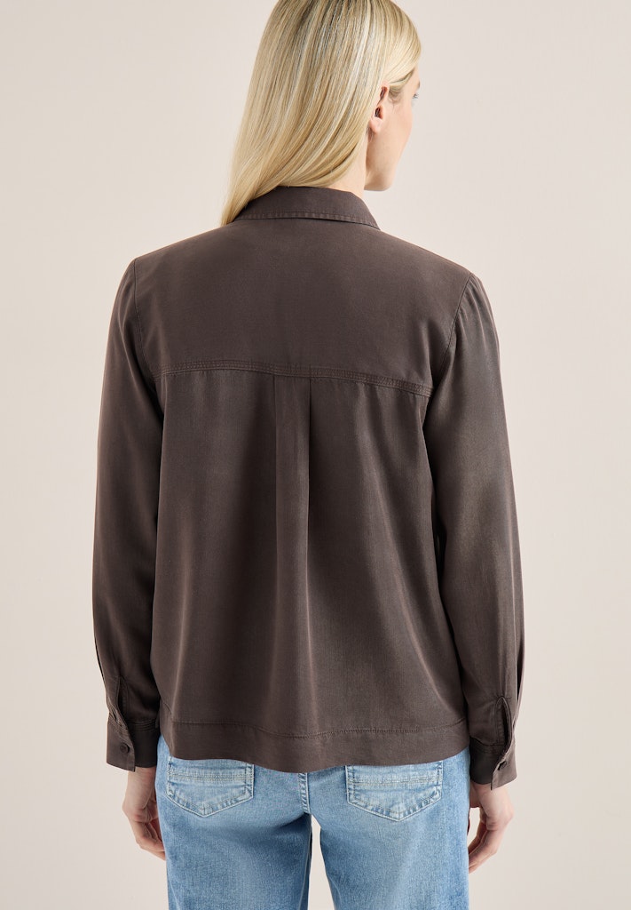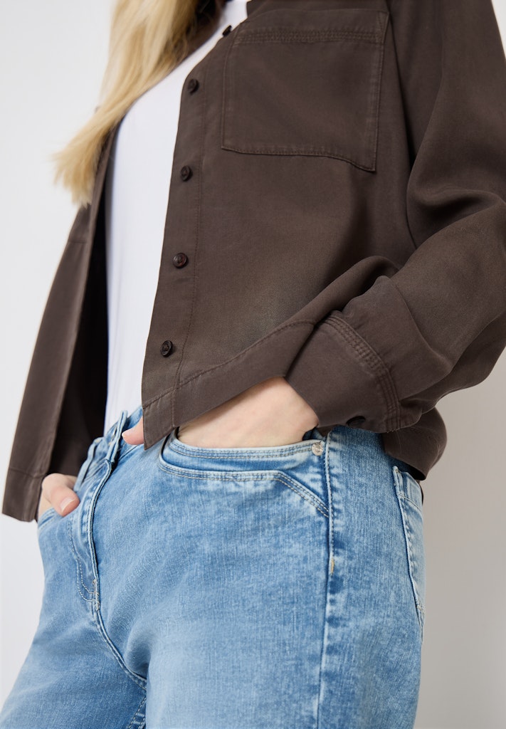 Diese Bluse im Colored-Denim-Look von CECIL für Damen bringt mit Hemdkragen, Brusttaschen und Knopfleiste lässigen Charme in deinen Kleiderschrank. Der Lyocell-Stoff sorgt für eine angenehme Haptik, während die Ärmel mit Knopfdetails für Flexibilität im Styling sorgen. Ein vielseitiges Kleidungsstück mit coolem Charakter. Lyocell Bluse Casual Hemdkragen Langarm Lässig und vielseitig Material: 100% Lyocell